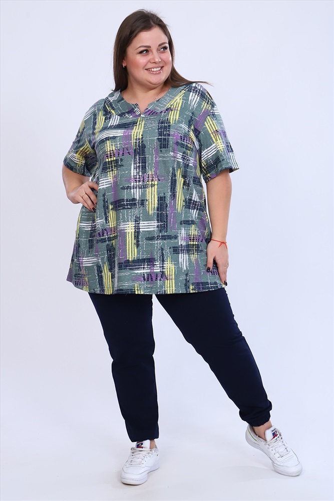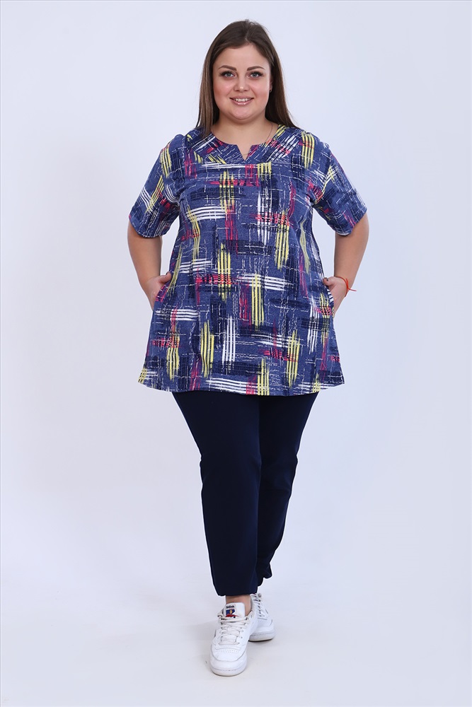 Состав: 100% хлопок Модель: Туника 6087 Тип товара: туника Материал: кулирка | кулирка Бренд: Натали Суслова Длина: короткий Карман: боковые НДС: 5% Отделка: с карманами Рейтинг: Рейтинг 4 и выше Рисунок: абстракция Рукав: короткий рукав Сезонность: лето | осень | весна | зима Силуэт: свободный Стиль: повседневный Воротник: без воротника Застежка: без застежки Туника удлинённая с коротким рукавом. Туника будет хорошо смотреться на разных типах женской фигуры и подойдет для женщин всех возрастов. Изделие выполнено из 100% хлопка, благодаря чему модель абсолютно комфортна в носке, мягкая и приятна к телу, что прекрасно подойдет для дома, дачи и отдыха. Таблица размеров и веса