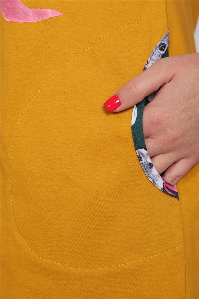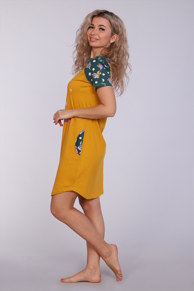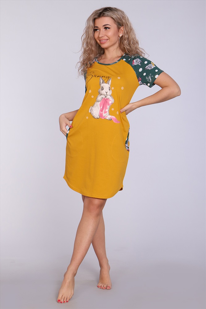Состав: 100% хлопок Модель: Туника 71049 Тип товара: туника Материал: кулирка | кулирка Бренд: Натали Суслова Длина: средняя длина Карман: боковые Назначение: для дома НДС: 5% Отделка: с печатью Рисунок: надпись | новогодний | зверюшки Рукав: короткий рукав Сезонность: лето | осень | весна | зима Силуэт: полуприлегающий Скидка: любая | от 10% и больше | от 30% и больше Стиль: домашний | молодежный Воротник: без воротника Застежка: без застежки Женское платье-туника длиной чуть выше колена с милым принтом на полочке в виде животного-символа Нового 2023 года - зайчика, с короткими рукавами - реглан контрастного цвета и округлой горловиной. Низ платья закруглен и образует небольшие разрезы по бокам. Горловина и вход в карманы обработаны окантовкой из ткани рукавов. Наличие боковых карманов добавит дополнительный комфорт при использовании. Выполнена из трикотажного полотна, 100% хлопок. Удобная, модная приятная к телу. Не стесняет движения. Яркие стойкие цвета соответствуют модным тенденциям. Можно носить, как домашнюю тунику или уличное платье. Для дома и отдыха, для дачи. Новогодняя тематика принтов делает эту модель отличным подарком девушкам на Новый год! Таблица размеров и веса
