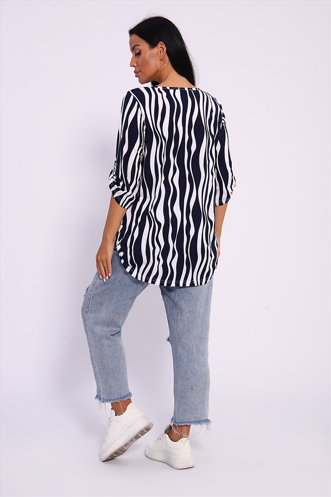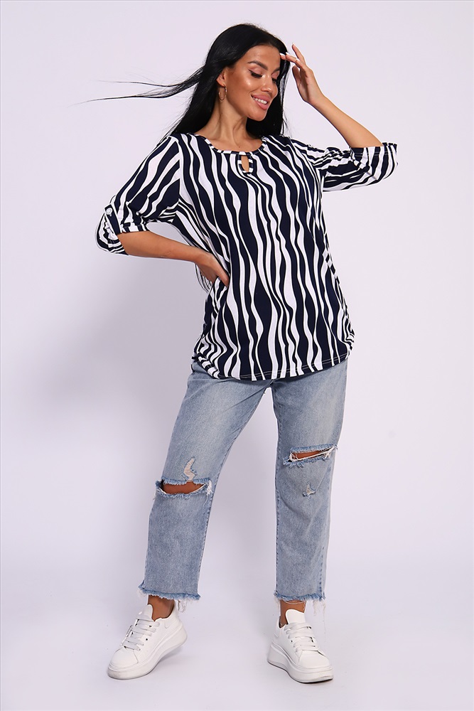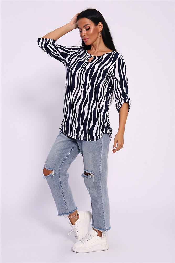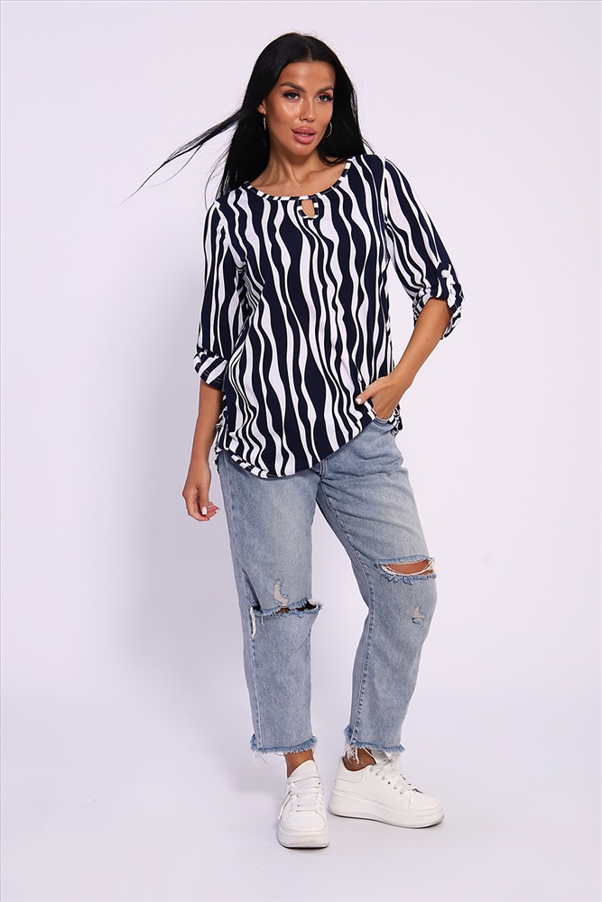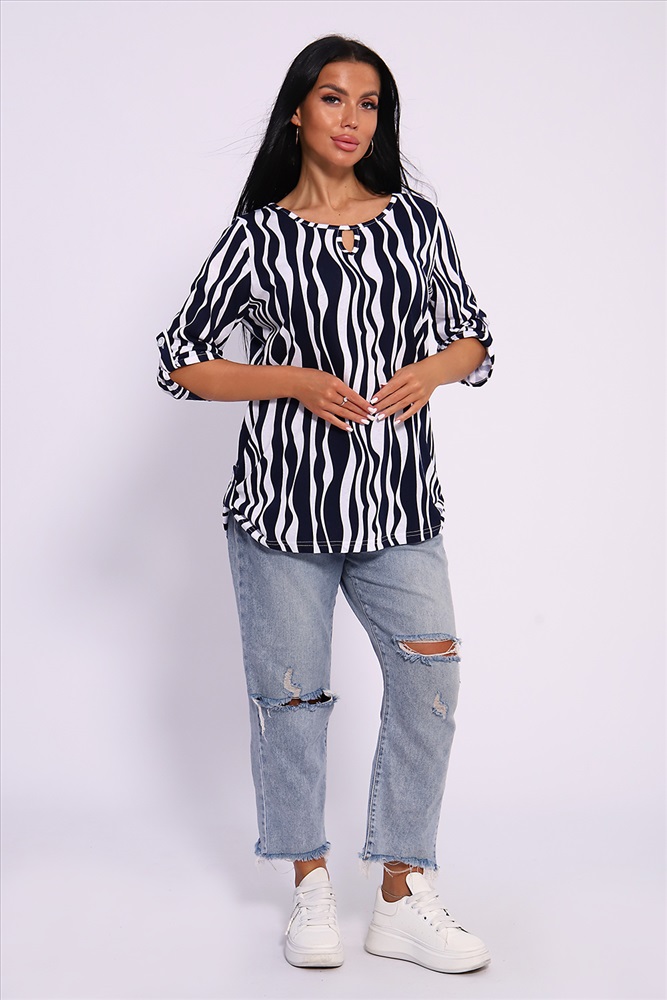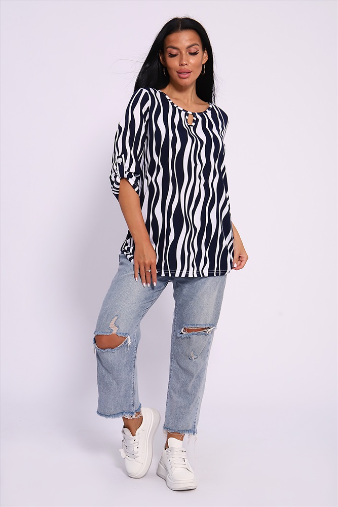 Застежка: без застежки Женская универсальная туника с рукавом 3/4 с фигурным вырезом с окантовкой из основной ткани. Длина рукава регулируется патой на пуговице. Такая же регулировка находится по бокам изделия. Можно носить как с опущенной патой, так и собранной на декоративную пуговицу. Низ изделия закруглен, перед немного укорочен. Туника отлично подойдет как для уличного, так и домашнего ношения. Прекрасно сочетается с джинсами на прогулку, с юбками и брюками в офис, с домашними брюками для дома. Большой ассортимент приятных расцветок на любой вкус. Туника прекрасно смотрится на беременных, так как выполнена в свободном стиле. Отличный подарок любимым женщинам! На модели представлен 48 размер. Параметры модели 165 см, 97-71-101