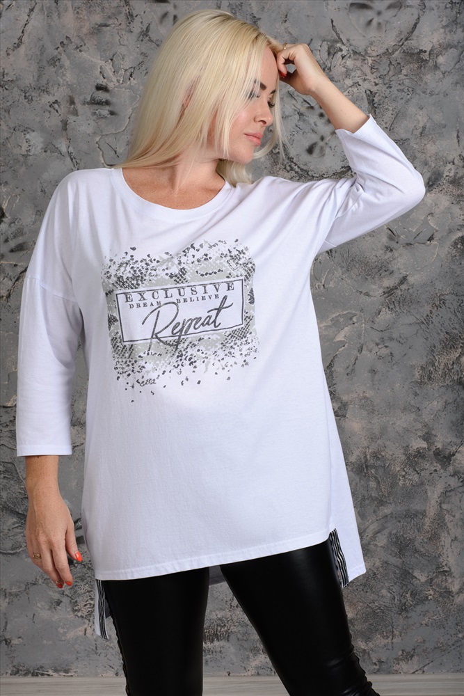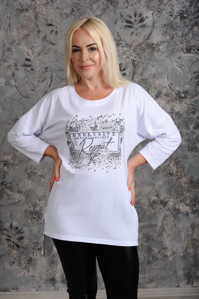 Состав: 100% хлопок Модель: Туника 7164 Тип товара: туника Материал: кулирка | кулирка Бренд: Натали Суслова Длина: средняя длина Карман: без карманов НДС: 22% Отделка: с печатью Рейтинг: Рейтинг 4 и выше Рисунок: крупный принт | надпись Рукав: рукав 3/4 Сезонность: лето | весна Силуэт: свободный Скидка: любая | от 10% и больше Стиль: повседневный Воротник: без воротника Застежка: без застежки Туника женская. На полочке принт. По низу изделия отделка тесьма. Таблица размеров и веса