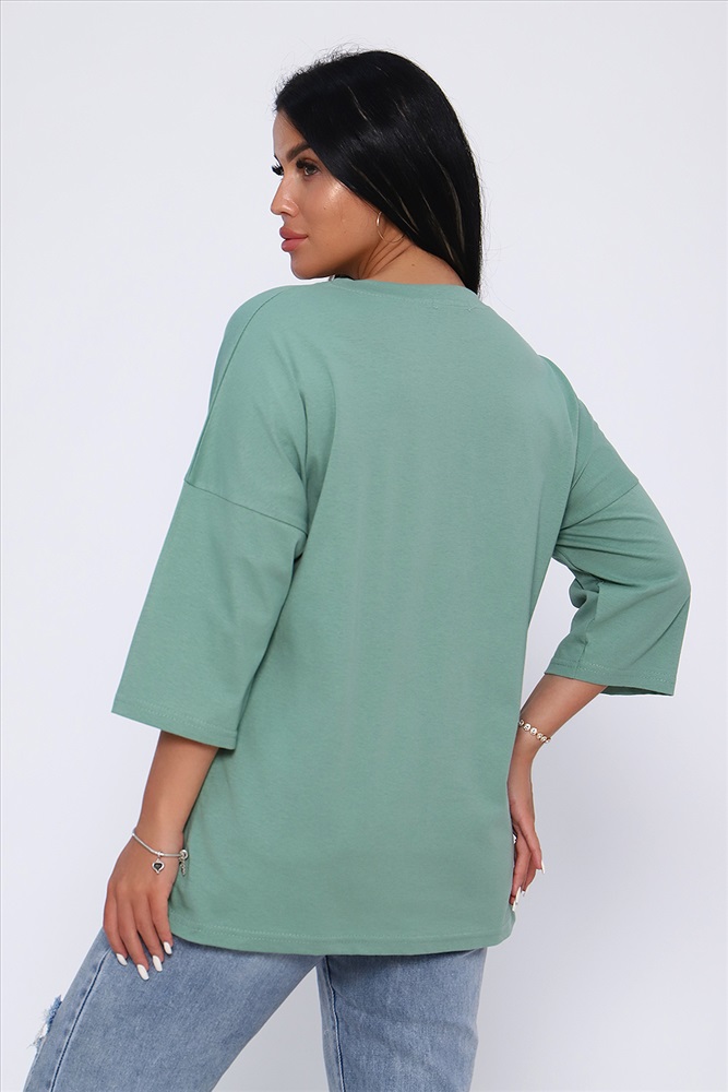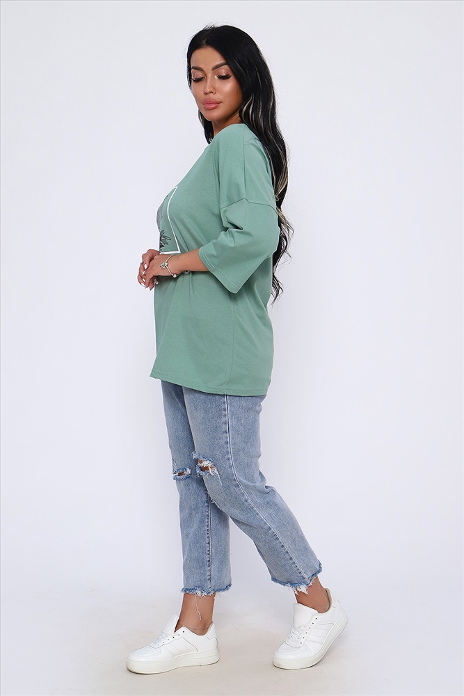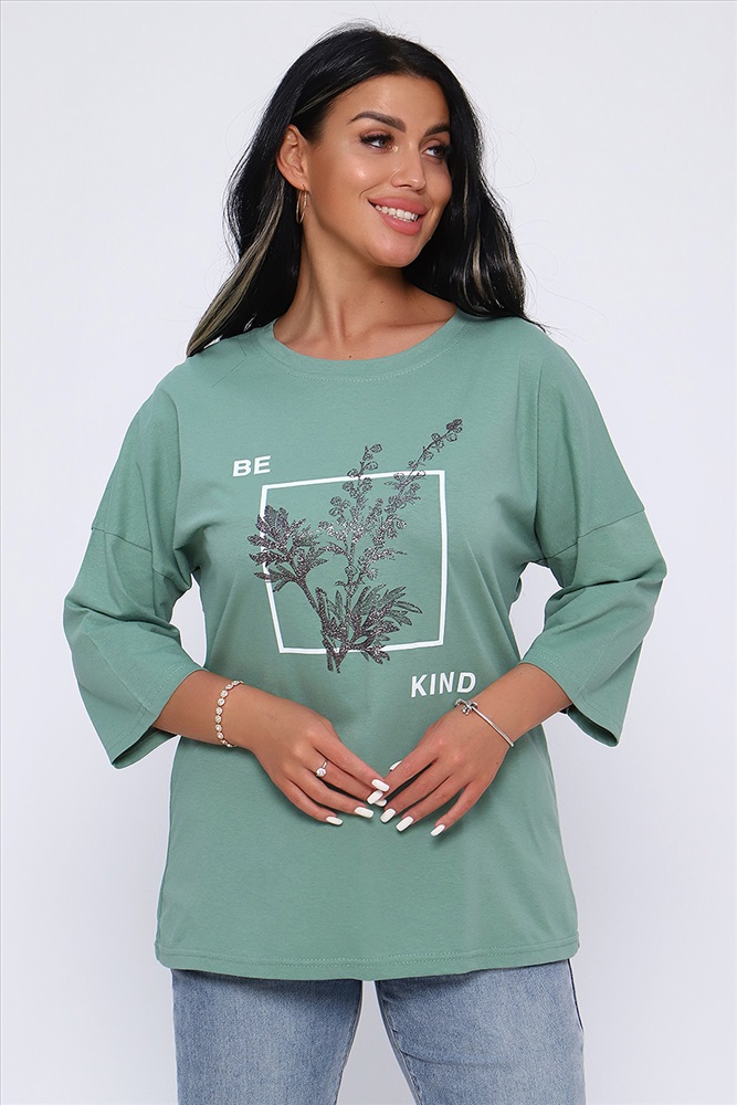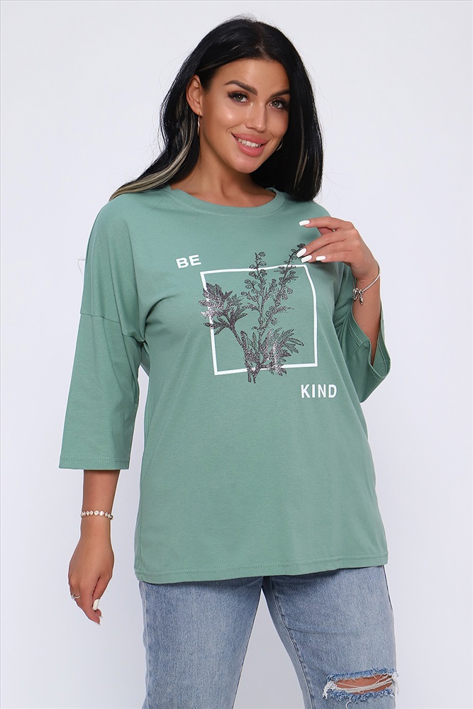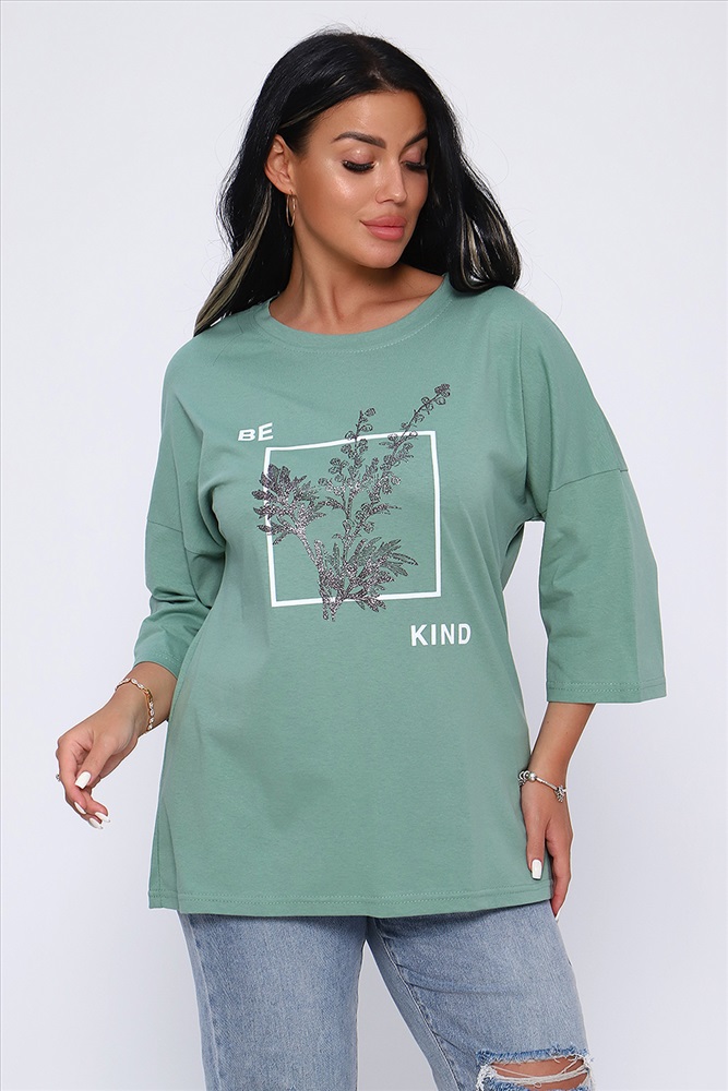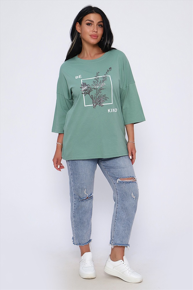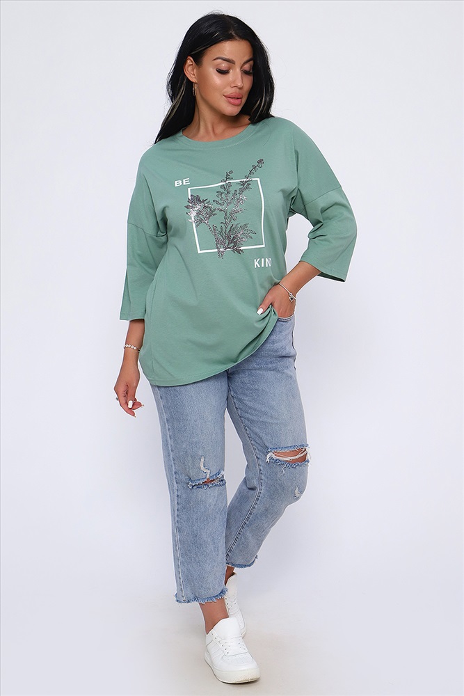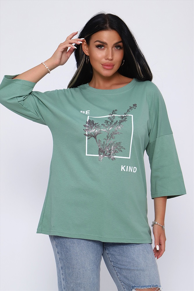 Застежка: без застежки Туника свободного кроя из легкого, натурального хлопка подарит ощущение комфорта и уюта. Оригинальный принт с использованием глиттера и техники объёмной печати украшает модель, придавая ей изысканный вид. Обработка деталей вкруговую с закрепкой, рукав длиной 3/4, горловина втачная из основной ткани. Большие размеры!