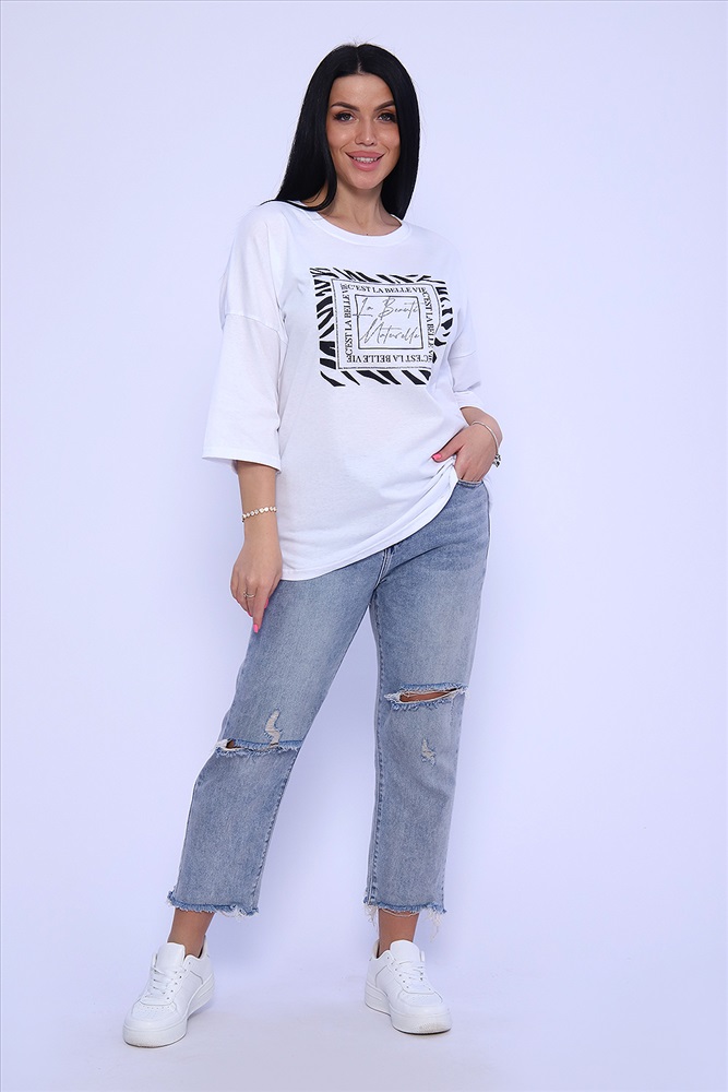 Состав: хлопок 100% Модель: Туника 80023 Тип товара: туника Материал: кулирка | кулирка Бренд: Натали Суслова Длина: средняя длина Карман: без карманов НДС: Без НДС Отделка: с печатью Рисунок: надпись Рукав: рукав 3/4 Сезонность: лето | осень | весна | зима Силуэт: прямой | свободный Стиль: повседневный Воротник: без воротника Застежка: без застежки Туника из натурального хлопка прекрасный вариант для повседневного образа. Оригинальный принт с использованием глиттера и техники объёмной печати украшает модель, придавая ей изысканный вид. Обработка деталей вкруговую с закрепкой, рукав длиной 3/4, горловина втачная из основной ткани. Большие размеры! Таблица размеров и веса