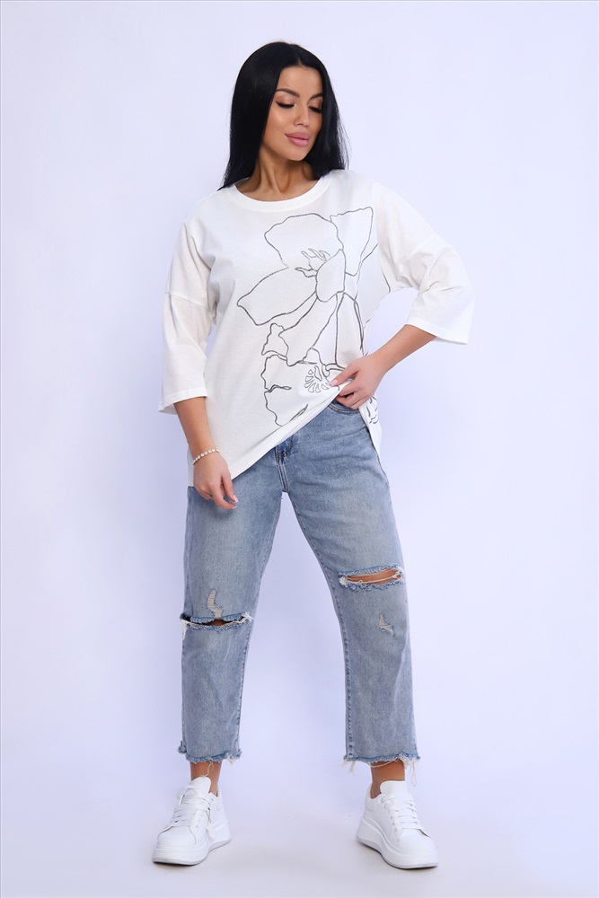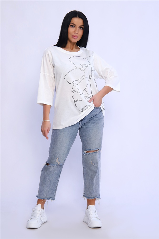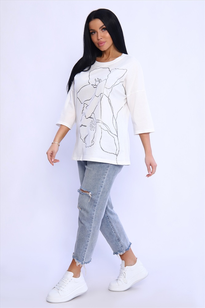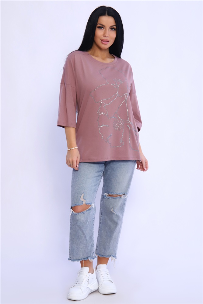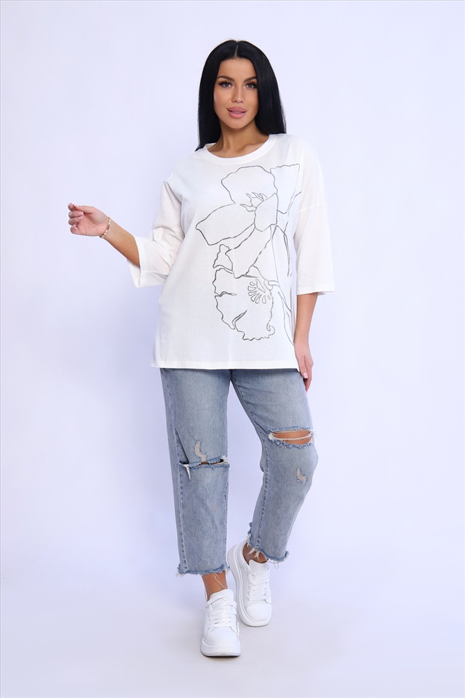 Состав: 100% хлопок Модель: Туника 80028 Тип товара: туника Материал: кулирка | кулирка Бренд: Натали Суслова Карман: без карманов Назначение: для дома НДС: Без НДС Отделка: с печатью Рисунок: крупный принт | цветы Рукав: рукав 3/4 Сезонность: лето | осень | весна Силуэт: свободный Стиль: домашний | повседневный Воротник: без воротника Застежка: без застежки Туника из натурального хлопка прекрасный вариант для повседневного образа. Будет комфортна и как базовый вариант к классическим брючкам, так и к стилю спортшик. Принт в виде большого цветка лилии с использованием глиттера и техники объёмной печати украшает модель, придавая ей изысканный вид. Обработка деталей вкруговую с закрепкой, рукав длиной 3/4, горловина втачная из основной ткани. Большие размеры! Таблица размеров и веса