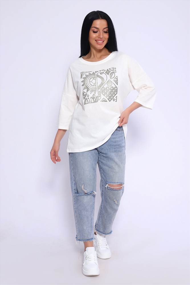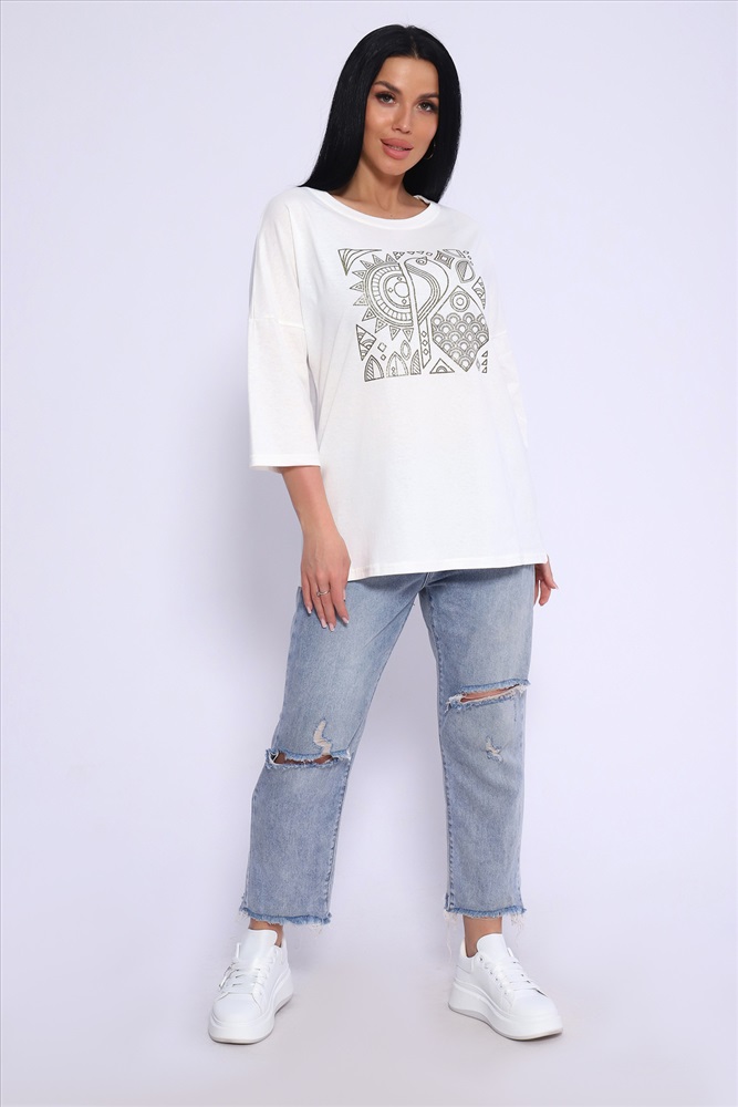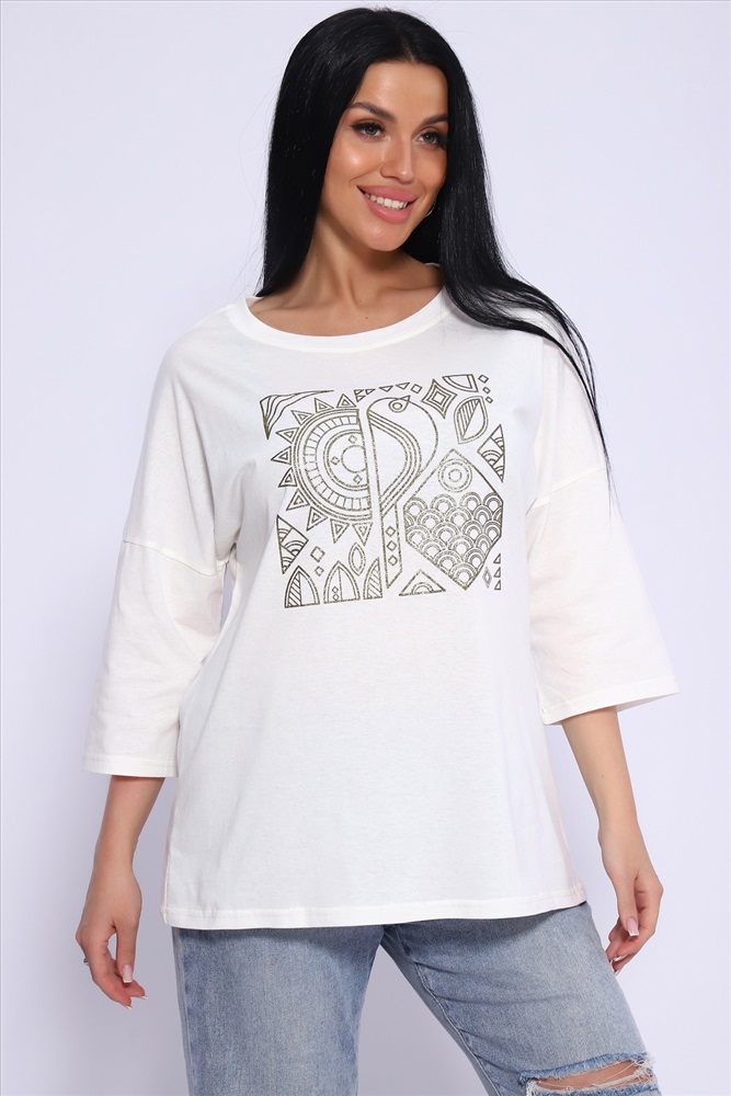 Состав: 100% хлопок Модель: Туника 80030 Тип товара: туника Материал: кулирка | кулирка Бренд: Натали Суслова Длина: короткий Карман: без карманов Отделка: с печатью Рейтинг: Рейтинг 4 и выше Рисунок: узоры Рукав: рукав 3/4 Сезонность: лето | осень | весна Силуэт: свободный Стиль: повседневный Воротник: без воротника Застежка: без застежки Туника свободного кроя из мягкого, натурального хлопка подарит ощущение комфорта и уюта. Оригинальный принт с использованием глиттера и техники объёмной печати украшает модель, придавая ей изысканный вид. Обработка деталей вкруговую с закрепкой, рукав длиной 3/4, горловина втачная из основной ткани. Большие размеры! Таблица размеров и веса