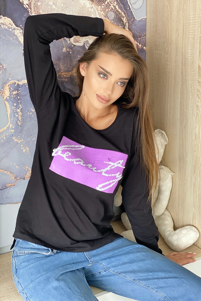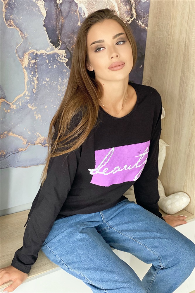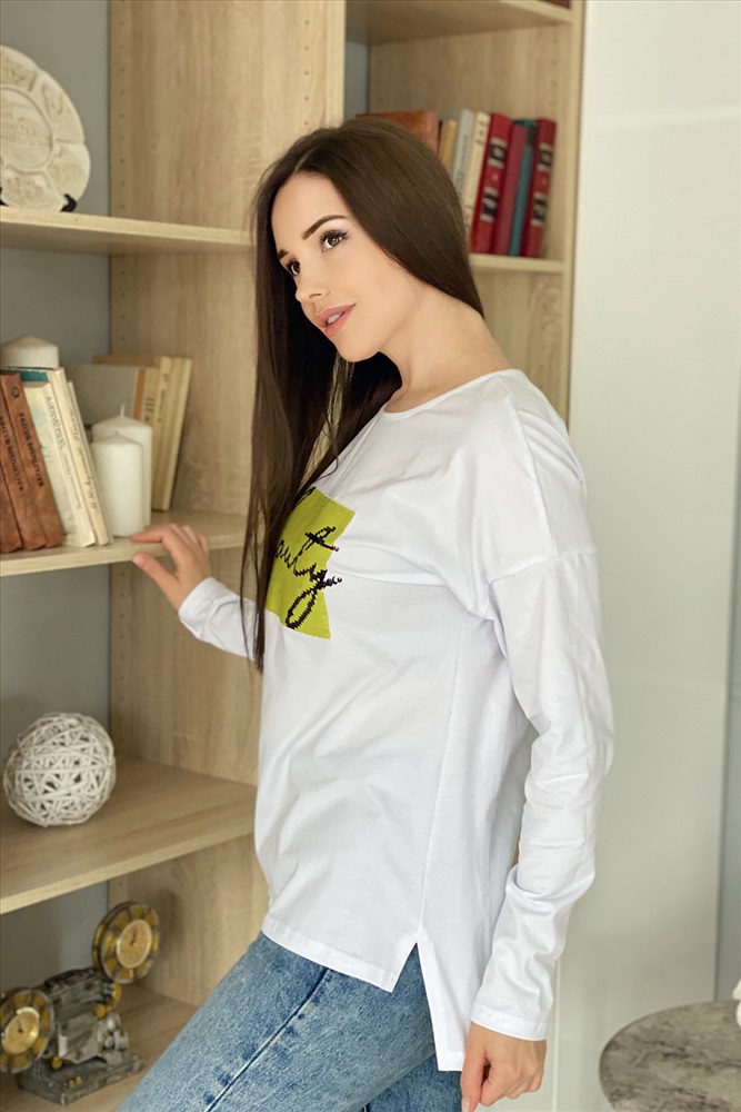 Застежка: без застежки Туника полуприталенного силуэта, с удлиненной спинкой, с округлой горловиной. Рукав длинный. В нижней части боковых швов обработаны разрезы. Горловина обработана бейкой из основного полотна.