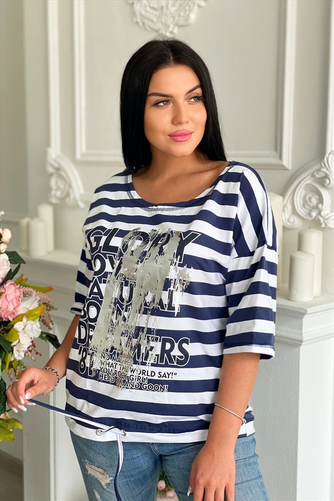Застежка: без застежки Туника женская прямого силуэта. Рукав цельнокроенный со швом. Горловина круглая. Низ туники фиксируется завязками. На полочке принт.