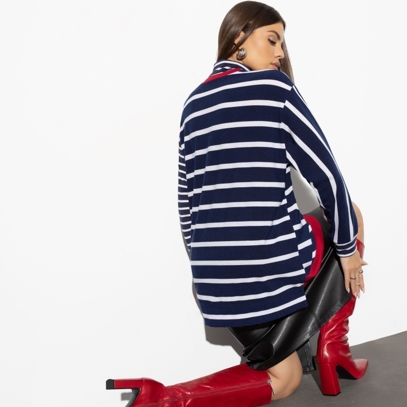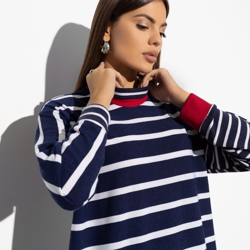 Встречайте вашу новую любимую тунику «Любимая история»! Идеальное сочетание трикотажных материалов «бербери» и «милано» приносит уют, который вы так ждали в холодные времена. Долой хмурость и осеннюю хандру! Эти туники — ваш ключ к отличному настроению. Выразительный красный цвет служит ярким акцентом, а полосатый узор подчеркивает жизнерадостность. Покупая такую тунику оптом, вы сможете дарить уют и стиль вашим клиентам, родственникам или сотрудникам. Будьте уверены, эта модель станет хитом вашего гардероба и любимой вещью всех, кто её примерит. Давайте поговорим о материях. Трикотаж «бербери» и «милано» — это синонимы комфорта и элегантности. Туники из этих материалов предлагают максимальное тепло, не жертвуя стилем. Они идеально подходят для холодных дней, когда хочется укутаться в мягкость и уют, но при этом оставаться стильной. Представьте, как удивительно приятно и тепло будет вашим клиентам, когда они облекутся в такой превосходный продукт. Скупая их оптом, вы не просто экономите, но и дарите радость и комфорт многочисленной аудитории. Эта туника — не просто одежда, это настроение! Дизайнерская полоска и акцентный красный моментально поднимут дух даже в самый ненастный день. Почему выбрать именно её? Потому что она станет отражением вашего настроения и вкуса, вашего желания приносить людям радость и уют. Продавая или покупая оптом, убедитесь, что ваши клиенты или близкие получили самое лучшее. Ведь в этой тунике каждая женщина почувствует себя уверенной, стильной и, главное, счастливой!