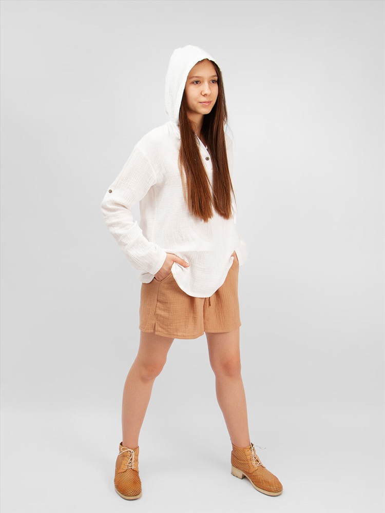 Модель: Туника муслиновая однотонная с капюшоном SP2301