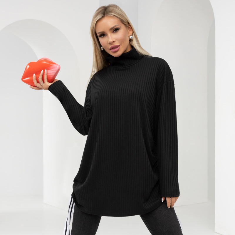 ТН ВЭД: 6106909000 Состав: Трикотаж «лапша» (60% полиэстер, 35% вискоза, 5% спандекс) Плотность ткани: Средняя Тип ткани: Трикотаж Вид застежки: Нет Карманы: Нет Основной цвет ткани: Черный Отрезная талия: Нет Подклад: Нет Резинка по талии: Нет Рисунок/раппорт: Нет, все изделия идентичны Сезон: Демисезон