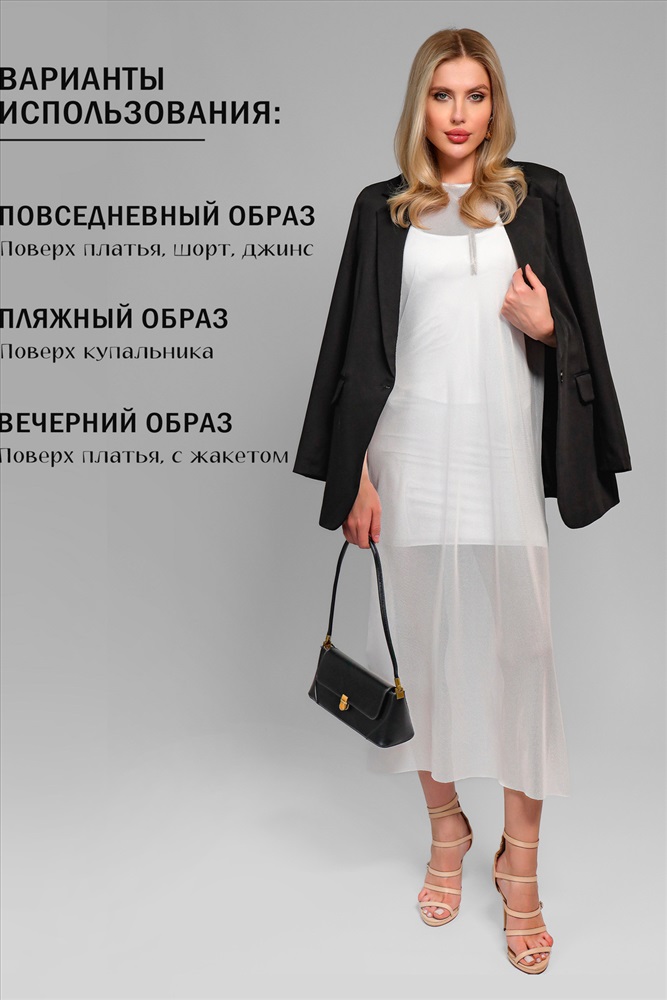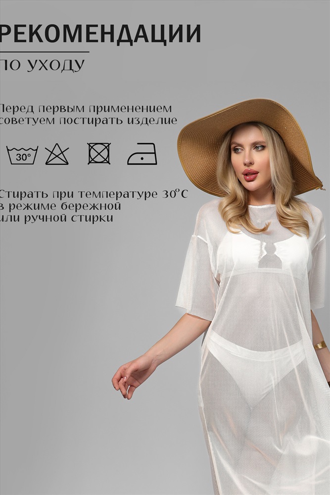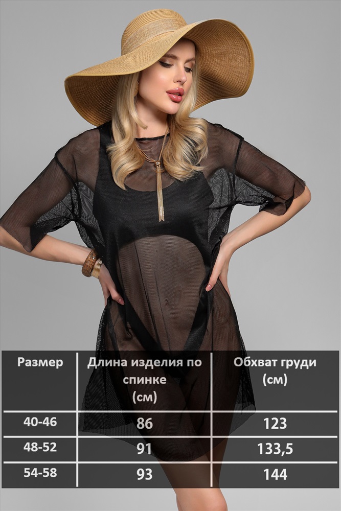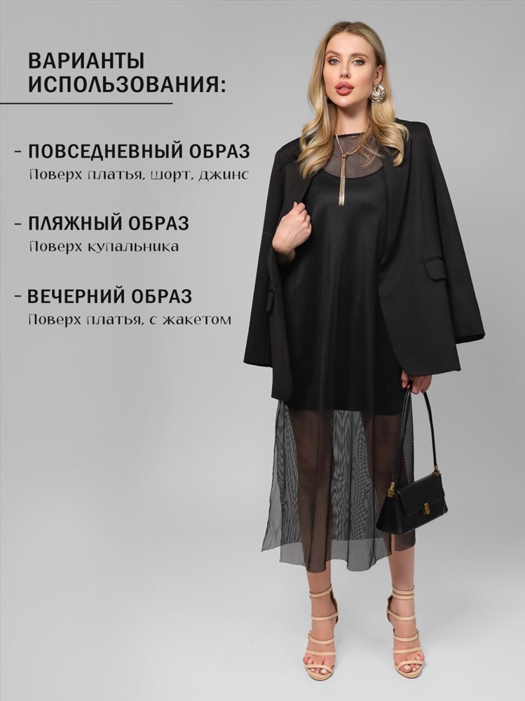 Застежка: без застежки Стильная туника-сетка идеальный выбор для вашего летнего гардероба! Изготовленная из легкого и воздухопроницаемого материала. Парео станет незаменимым аксессуаром как на пляже, так и в повседневной жизни. Накидка пляжная женская быстро сохнет. Эта туника для женщин отлично сочетается с короткими платьями, создавая стильный образ и нарядный образ. Носите её поверх купальника для смелого пляжного лука или используйте в качестве вечернего наряда на короткое платье или на платье комбинацию. Наша пляжная женская туника очень стройнит и подчеркивает достоинства вашей фигуры, при этом скрывая недостатки, если они у вас есть). Легкость и комфорт, которые дарит это прозрачное платье, позволят вам чувствовать себя уверенно и стильно в любой ситуации. Не упустите возможность добавить платье-сетка в ваш гардероб! Порео идеально подходит для женщин, девочек и подростков. Женская пляжная туника представлена в черном и белом цвете, как длинная, так и короткая. Туника не мнется и не электризуется, нижний край не обработан, поэтому вы вполне можете обрезать изделие под необходимую вам длину обычными ножницами, край не будет крошиться, поэтому туника-сетка подходит для женщин высокого роста, женщин среднего роста и женщин высокого роста! Приятных покупок!!!