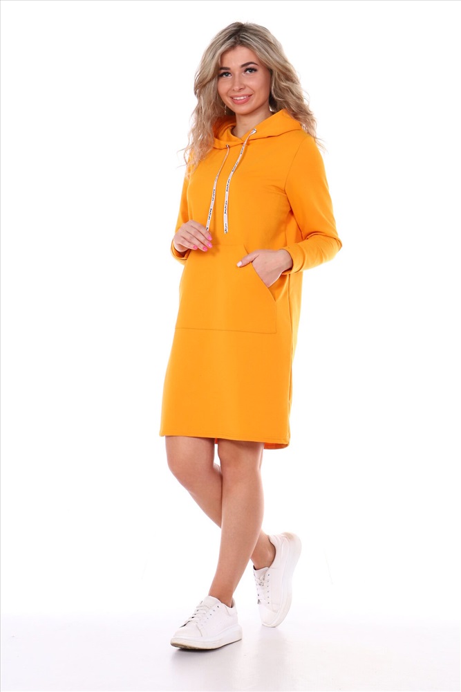 Страна производства: Россия Стильная женская туника из футера. Платье прямого покроя, с капюшоном и накладными карманами. Такая модель подойдет абсолютно на любую фигуру. В этом платье вам будет очень комфортно в любую погоду, и в то же время вы всегда будете выглядеть стильно.