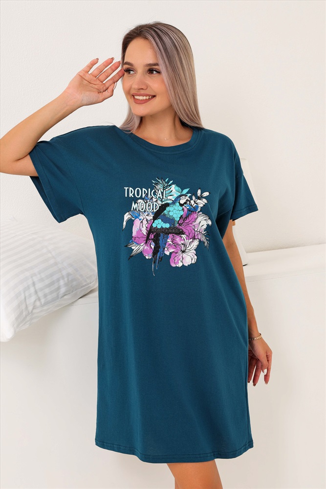 Состав: 100% хлопок Модель: Туника Tropical mood Тип товара: туника Материал: кулирка | кулирка Бренд: ХОТ СТОРИ Длина: средняя длина Карман: без карманов Назначение: для дачи | для дома НДС: 5% Отделка: с печатью Рисунок: крупный принт | цветы Рукав: короткий рукав Силуэт: свободный Стиль: домашний Воротник: без воротника Застежка: без застежки Туника приятно прилегает к телу и позволяет коже дышать. Оптимальная длина, короткие рукава и округлый вырез горловины отлично подойдет для дома и отдыха, дачи и прогулок. Туника женская будет хороша в качестве домашней и повседневной одежды. Отличная замена халатам, позволит выглядеть в домашней обстановке ярко и красиво. Тунику женскую можно носить не только дома, но и на прогулке, даче. Так же подойдёт беременным девушкам и женщинам. Таблица размеров и веса
