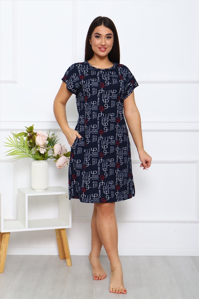 Застежка: без застежки Туника женская, выполнена из трикотажного полотна кулирка. Туника полуприлегающего силуэта, чуть выше колен. На рукавах и по низу изделия выполнены разрезы. По бокам туники карманы.