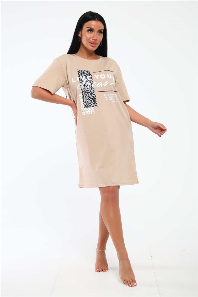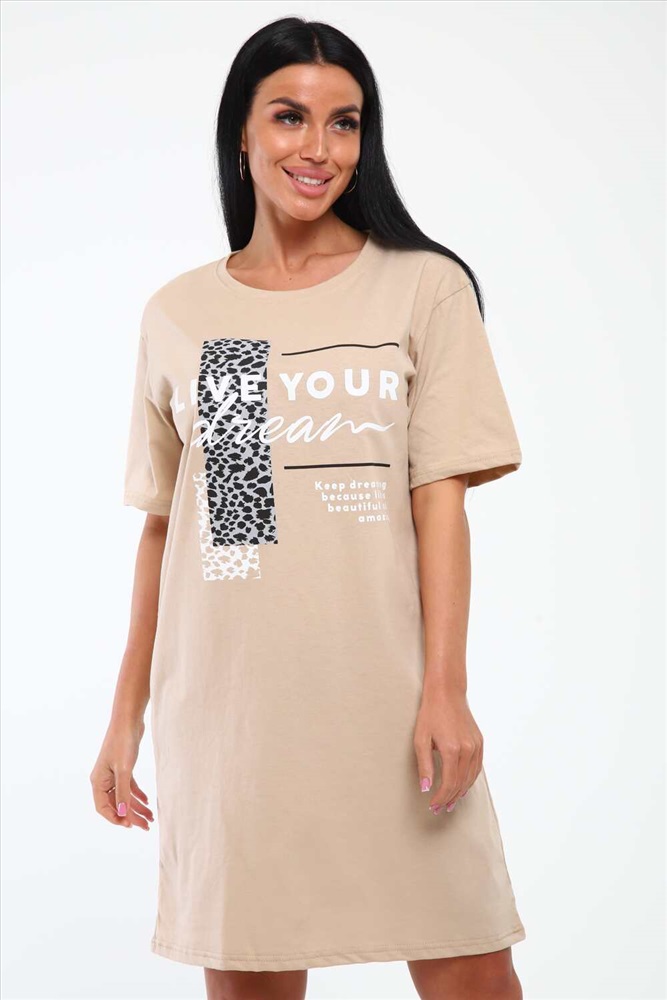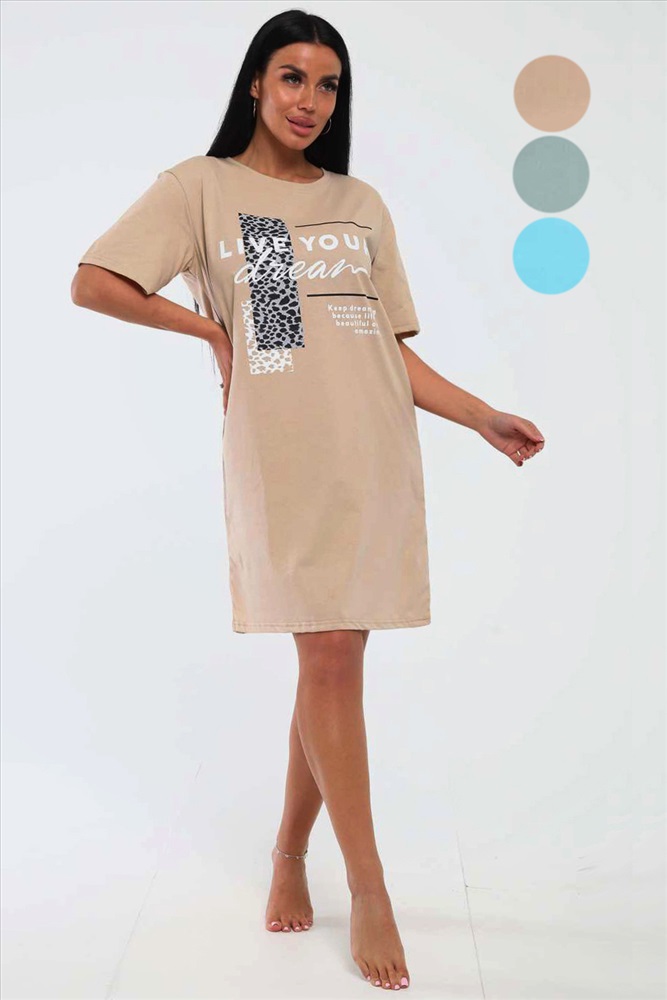 Застежка: без застежки Туника женская прямого силуэта. Горловина выполнена с обтачкой. На передней полочке печать.