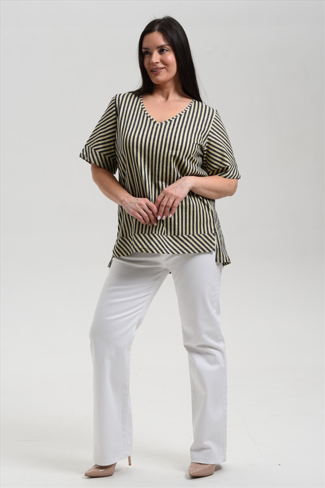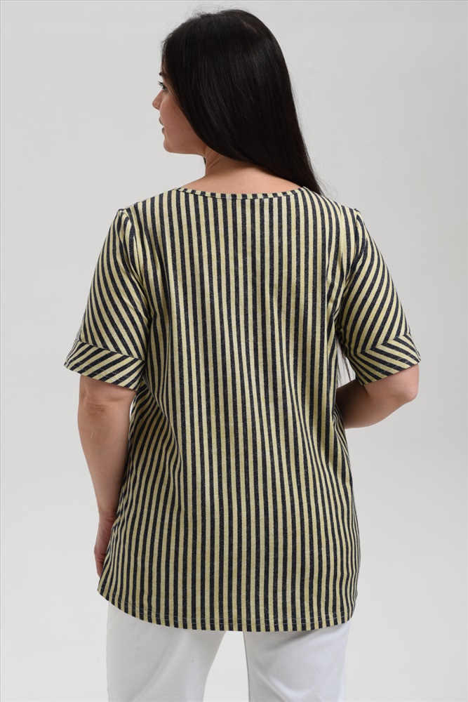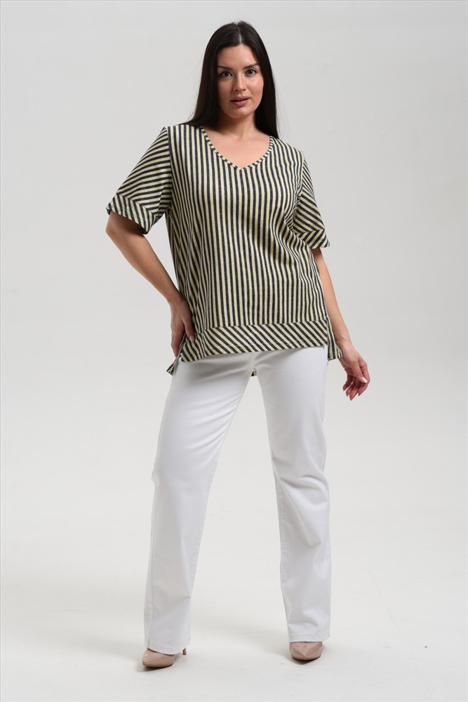 Состав: 100% х/б Модель: Туника женская 8476 Тип товара: туника Материал: кулирка Бренд: Натали Суслова Карман: без карманов Назначение: для дома НДС: 22% Отделка: с манжетами Рейтинг: Рейтинг 4 и выше Рисунок: полоска Рукав: короткий рукав Сезонность: лето | осень | весна | зима Силуэт: свободный Скидка: любая | от 10% и больше Стиль: домашний | повседневный Воротник: без воротника Застежка: без застежки Туника прямого силуэта, с V-образной горловиной, с фигурной линией низа, длиной до середины бедра. Рукав втачной, короткий, с манжетом. В нижей части боковых швов обработаны разрезы. Горловина обработана бейкой из основного полотна. Таблица размеров и веса