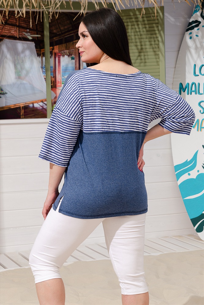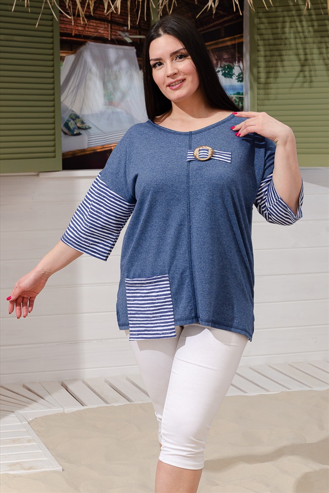 Состав: хлопок 100% и хлопок 70%, ПЭ 30% Модель: Туника женская 9218 Тип товара: туника Материал: кулирка | кулирка Бренд: Натали Суслова Карман: накладные Назначение: для дома НДС: 22% Отделка: с карманами Рейтинг: Рейтинг 4 и выше Рисунок: полоска Рукав: рукав 3/4 Сезонность: лето | осень | весна | зима Силуэт: свободный Стиль: домашний | повседневный Воротник: без воротника Застежка: без застежки Туника женская прямого силуэта выполнена из меланжевой х/б ткани и ткани в полоску. Горловина округлая. Рукав цельнокроеный со швом. Полочка из двух симметричных деталей. В шов стачивания деталей вставлена пата с большой декоративной, кокосовой пуговицей. На спинке кокетка. Отдельно изготовленный карман настрочен на полочку. Таблица размеров и веса