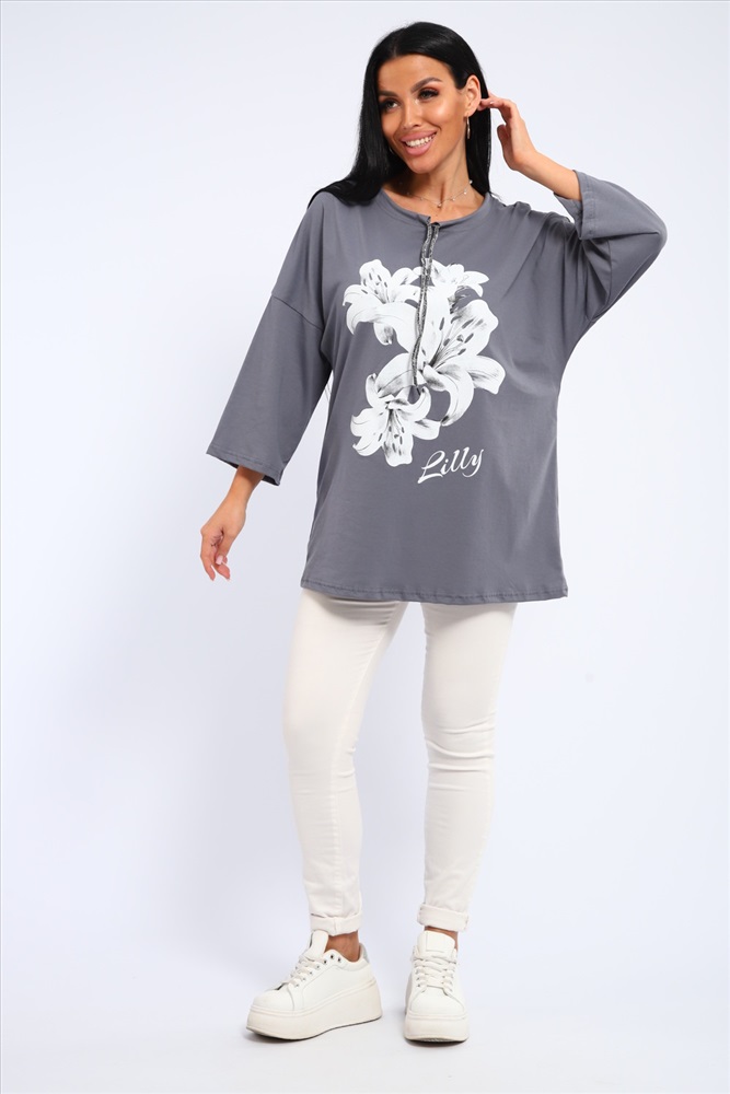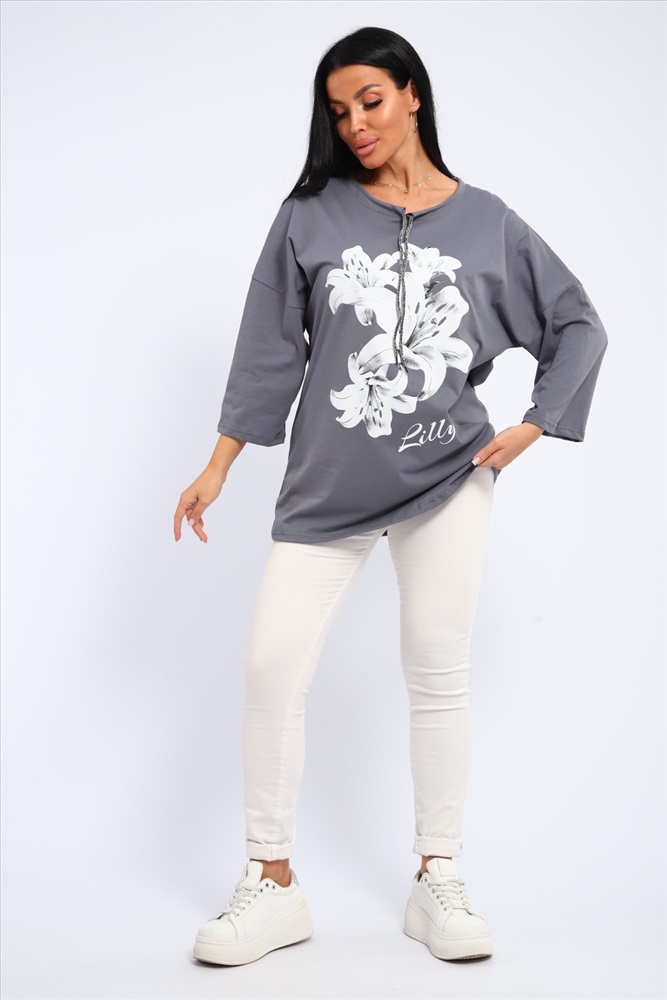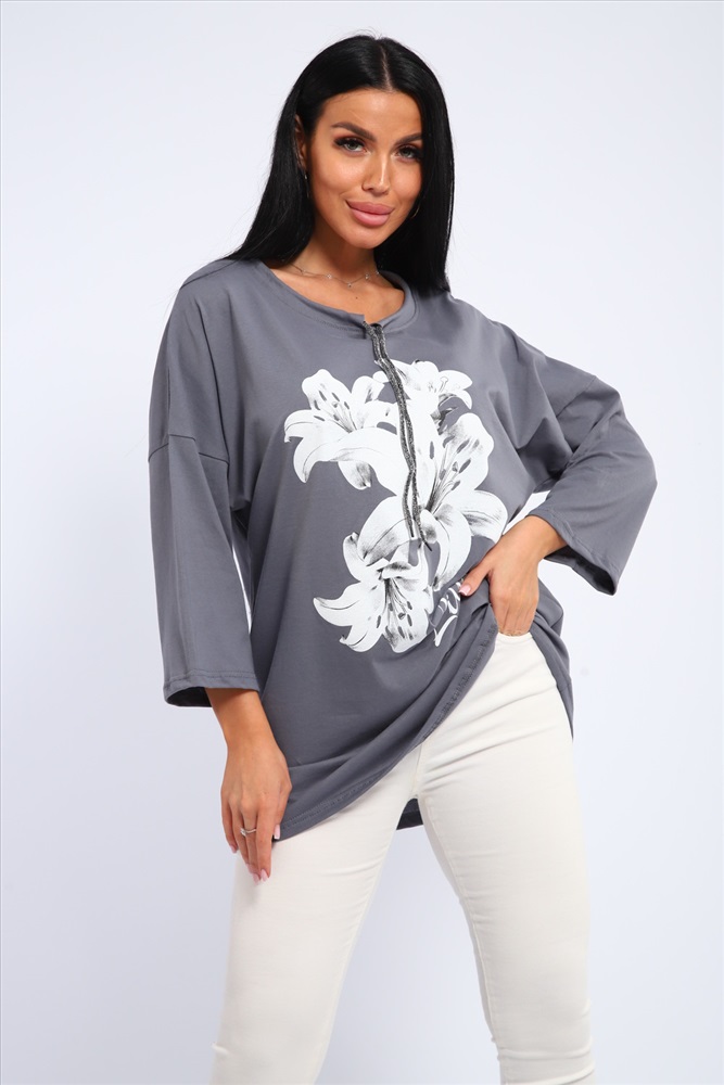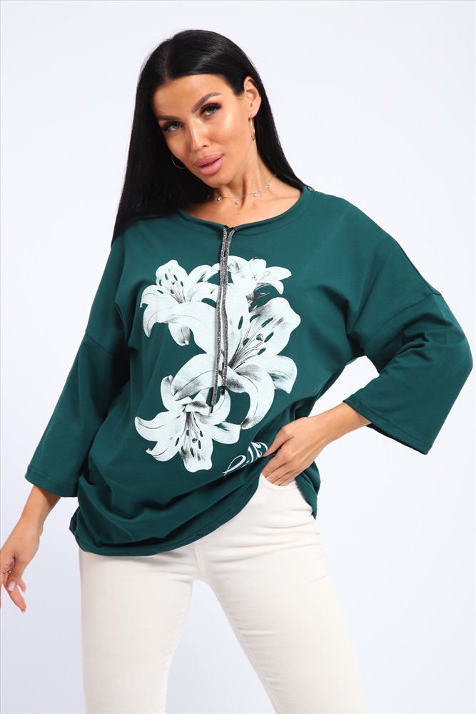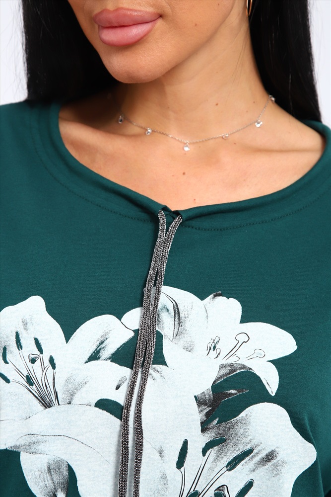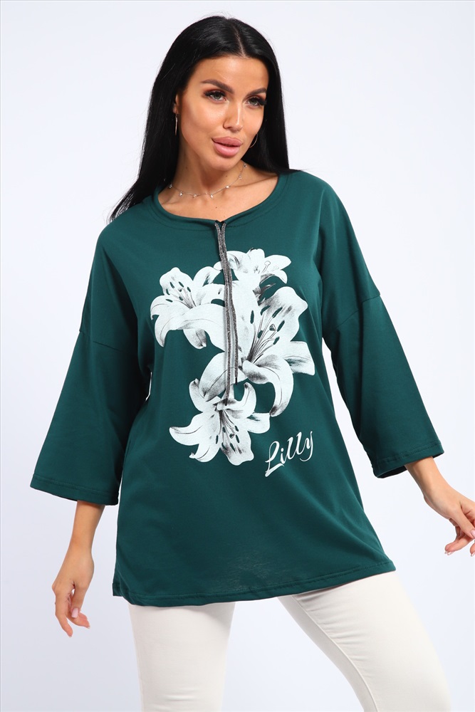 Застежка: без застежки Туника женская свободного кроя со шнурком на горловине и печатью на передней полочке.