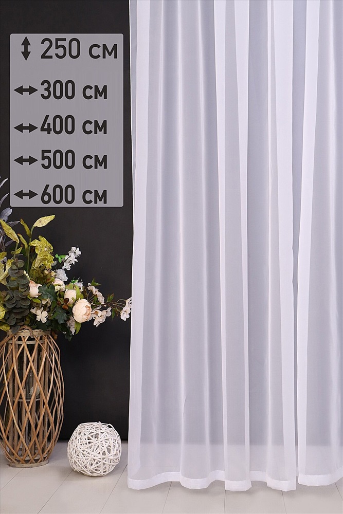 Тюль вуаль белого цвета, полупрозрачный, матовый, однотонный. Высота 250 см, ширина на выбор. Без утяжелителя. Лента органза с петлями и затяжками, для крепления на карниз с крючками или на гардину трубу штангу. Штора подходит для кухни, гостиной, детской комнаты и спальни. Легкая и парящая. Отгораживает дом от посторонних глаз, пропуская и рассеивая солнечный свет. Легко стирать в стиральной машинке, можно без сушки, достаточно после стирки повесить на карниз, складки расправятся под тяжестью изделия или разгладить отпаривателем. Цвет может незначительно отличаться от представленного на фото ввиду индивидуальных особенностей настроек мониторов.