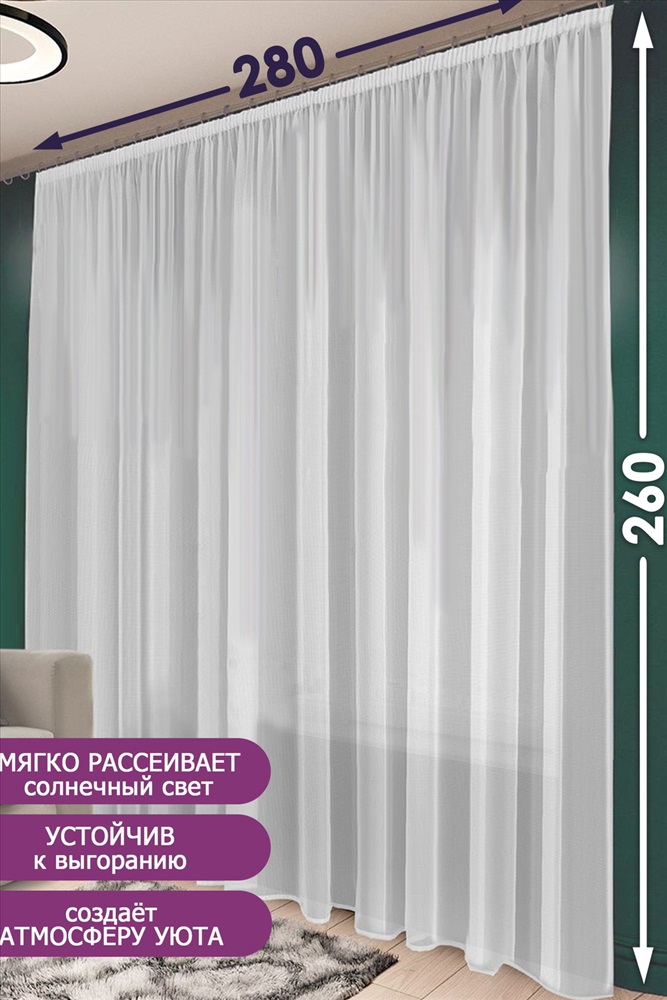 Состав: 100% полиэстр Модель: Тюль вуаль Bio-Line размер 280х260 см Тип товара: тюль Материал: вуаль | вуаль Бренд: Bio-line Длина: длинный Рисунок: однотонные Сезонность: лето | осень | весна | зима Интерьерная вуаль на шторной ленте 4 см представляет собой готовые тканевые тюлевые шторы на большое окно. На ощупь ткань шторы тюль 280 на 260 нежная, мягкая, пластичная, хорошо драпируется в прямые и округлые складки. Летняя, легкая, широкая вуаль белая, плотностью 60гр/м3., идеально впишется в комнату и будет хорошо пропускать свет, занавески тюль устойчивы к воздействию прямых солнечных лучей. В составе шторы вуаль есть полиэстер, что делает изделие практичными и устойчивыми к большому количеству стирок. Тюль в спальню высота 260 это универсальный вариант, чтобы интерьер стал легче и красивее. В любой комнате высота 250 впишется идеально, а в качестве кухонной шторы будет более практична - ведь тюль не впитывает запахи и не теряет цвет в ходе использования. Таблица размеров и веса