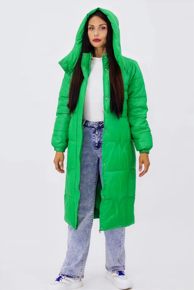 Стильная и практичная длинная куртка идеально подходит для демисезонного использования и теплой зимы. Эта куртка станет вашим надежным спутником в холодное время года, обеспечивая тепло и комфорт при любых погодных условиях. Верхняя часть изделия выполнена из специальной курточной ткани, к которой не прилипает грязь или шерсть домашних любимцев и защищает от влаги и ветра, что делает куртку отличным выбором для дождливых или снежных дней. Наполнение из хлопкового пуха гарантирует оптимальную теплоизоляцию, позволяя вашему телу поддерживать комфортную температуру даже в морозные дни. Дизайн куртки продуман до мелочей: съемный капюшон с высоким воротом на кнопках добавляет дополнительную защиту от холода и ветра. Двух замковая молния с планкой на клепках не только обеспечивает надежную застежку, но и создает стильный акцент, делая куртку современным элементом вашего гардероба. Особый интерес представляет ее оригинальный стежок, придающий изделию актуальный вид и подчеркивающий качество. Спереди расположены два удобных кармана на кнопках и два боковых кармана, что позволяет с комфортом носить с собой необходимые мелочи и согреть руки в холодную погоду. Рукава куртки на резинке обеспечивают идеальную посадку, защищая от холодного воздуха и гарантируя свободу движений. Эта деталь делает куртку особенно удобной в использовании во время активного отдыха или повседневной носки. Не упустите возможность приобрести эту незаменимую вещь в вашем гардеробе, которая сочетает в себе стиль, практичность и комфорт. Качество материалов и продуманный дизайн гарантируют, что эта куртка станет вашим верным помощником на несколько сезонов вперед. Это модная функциональная куртка сочетает классический дизайн с современными трендами, что делает её отличным выбором для людей всех возрастов.