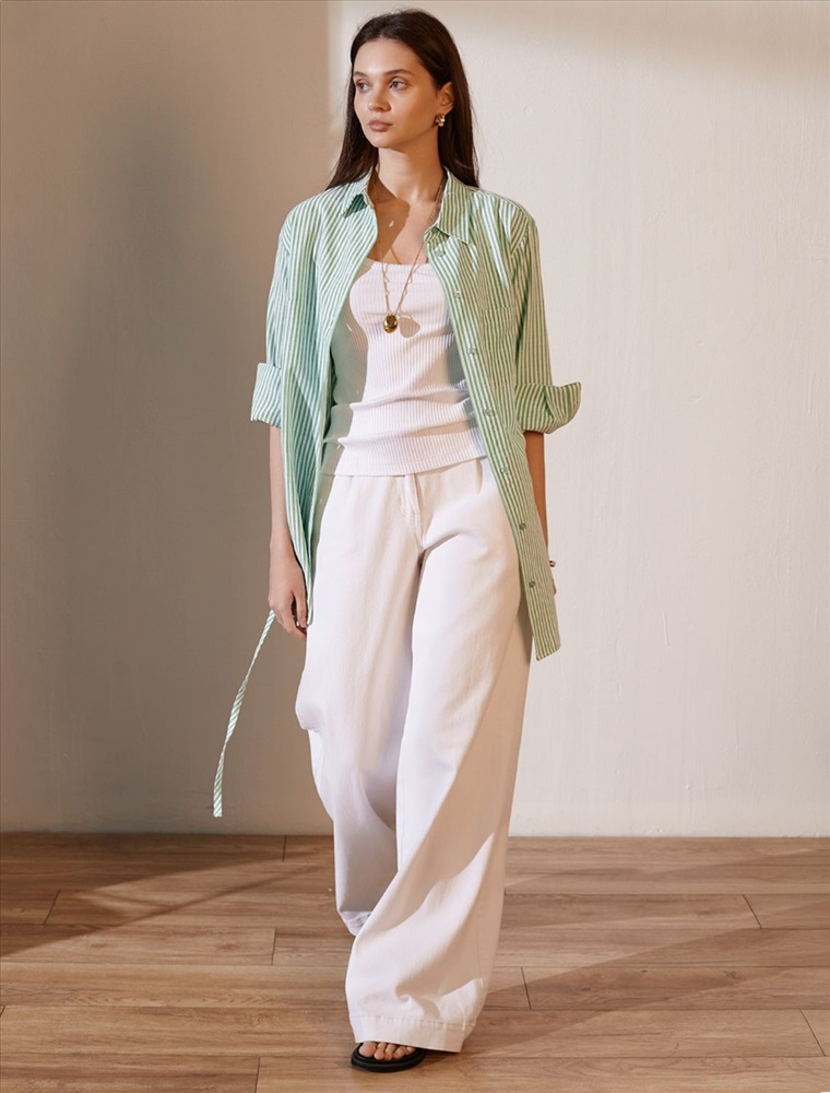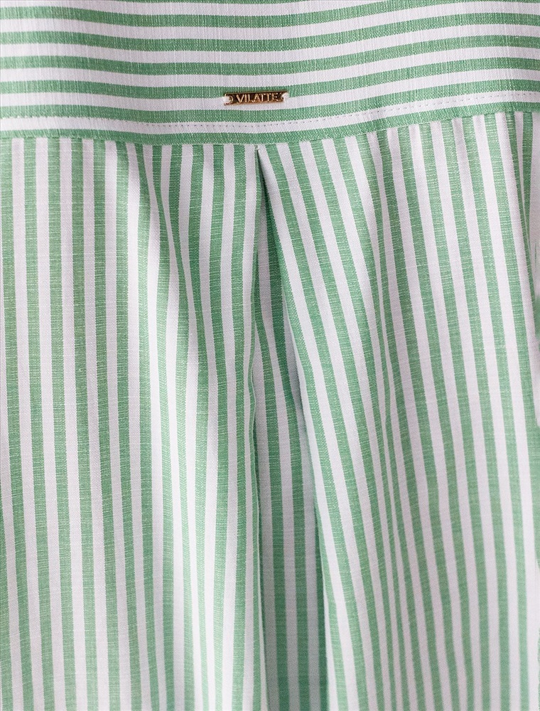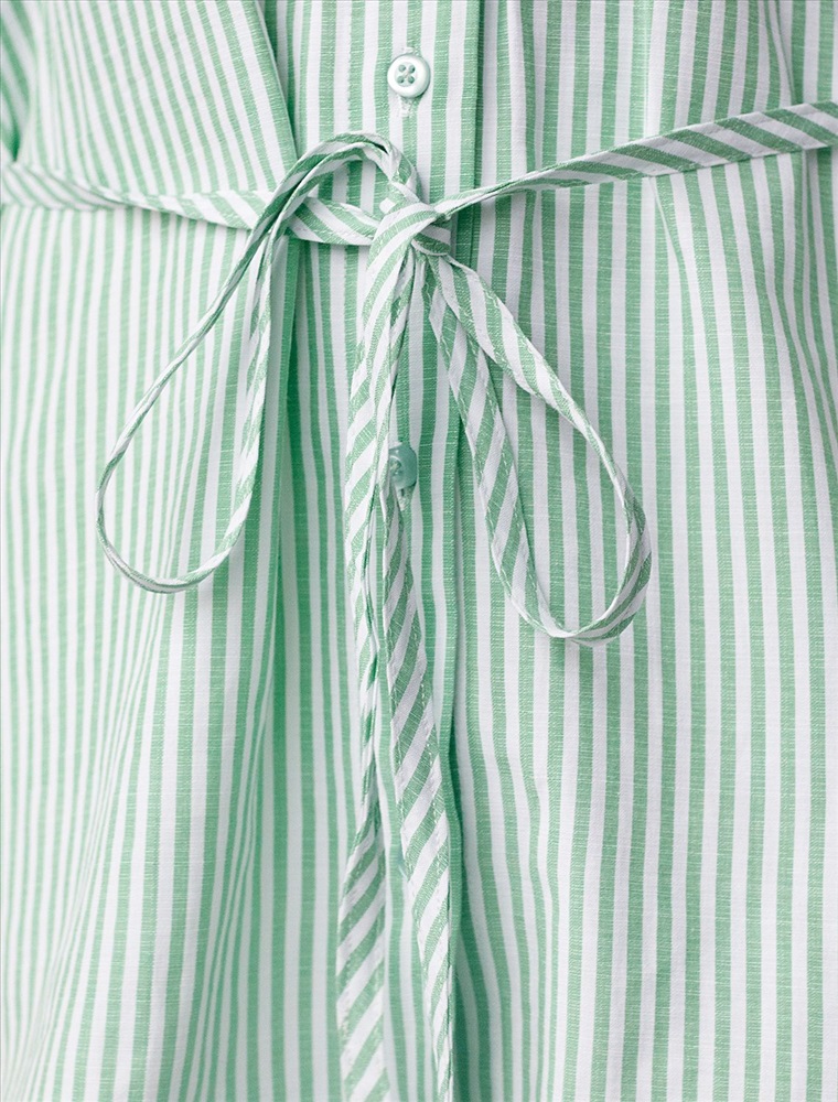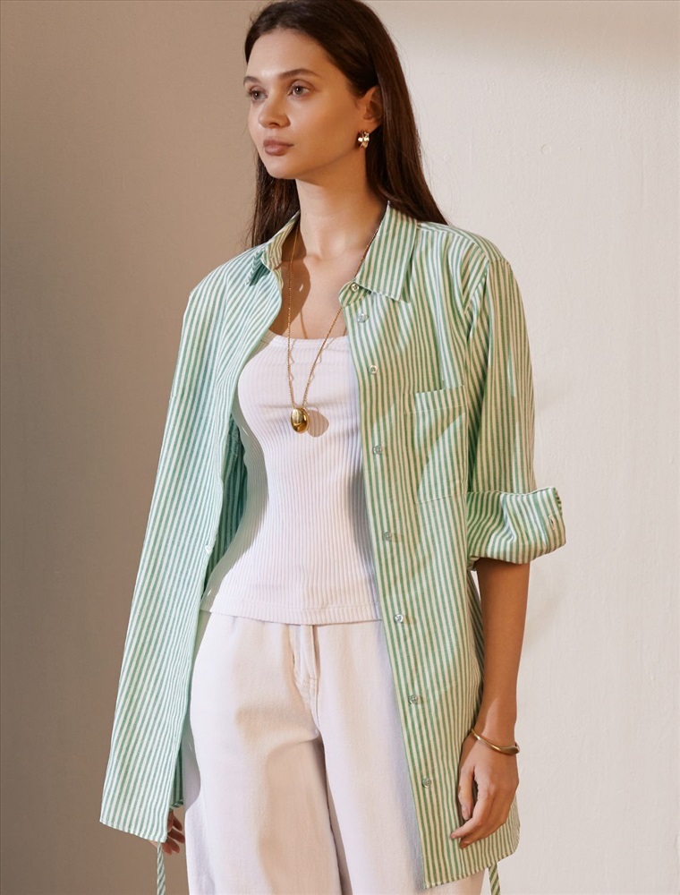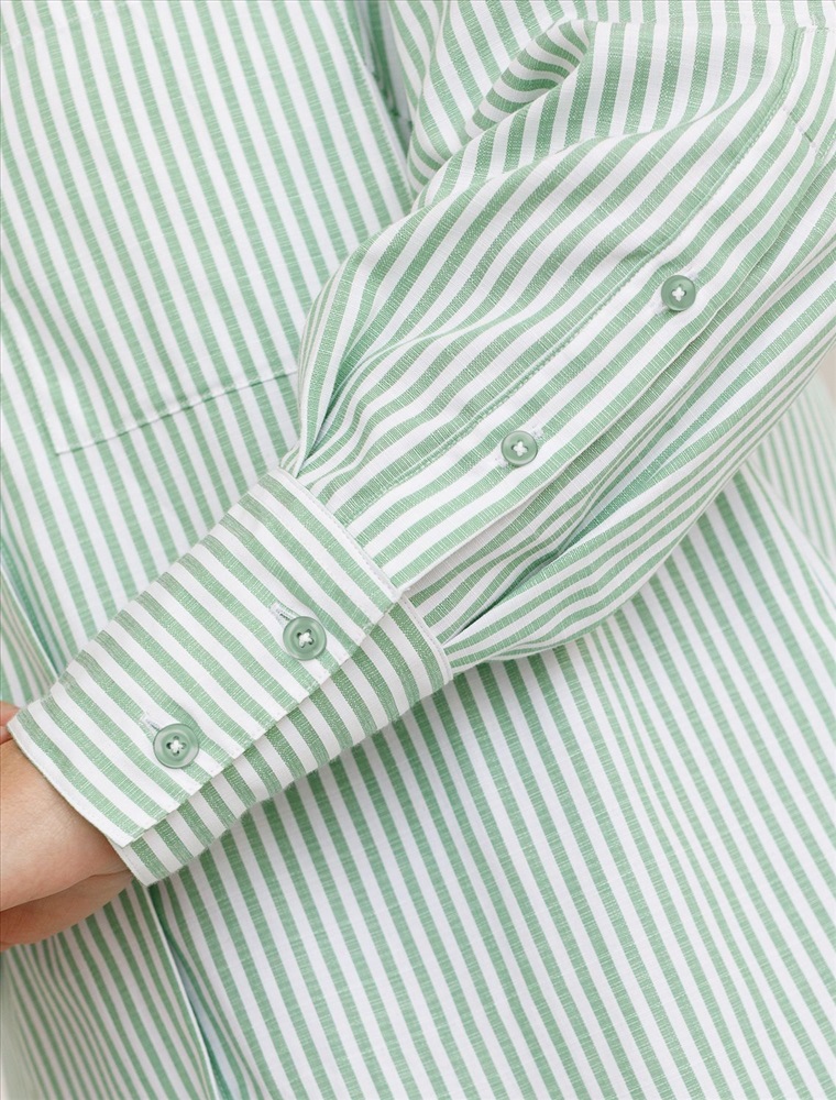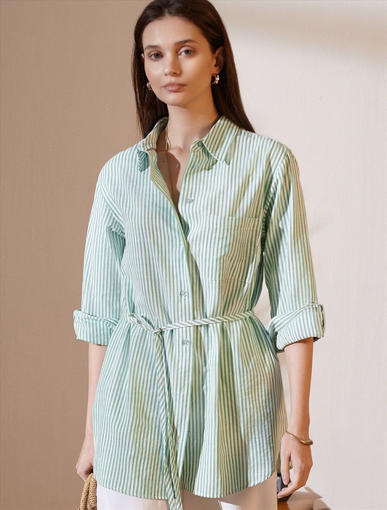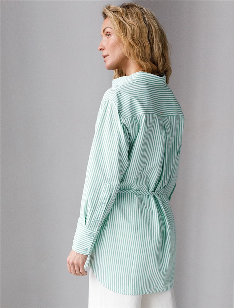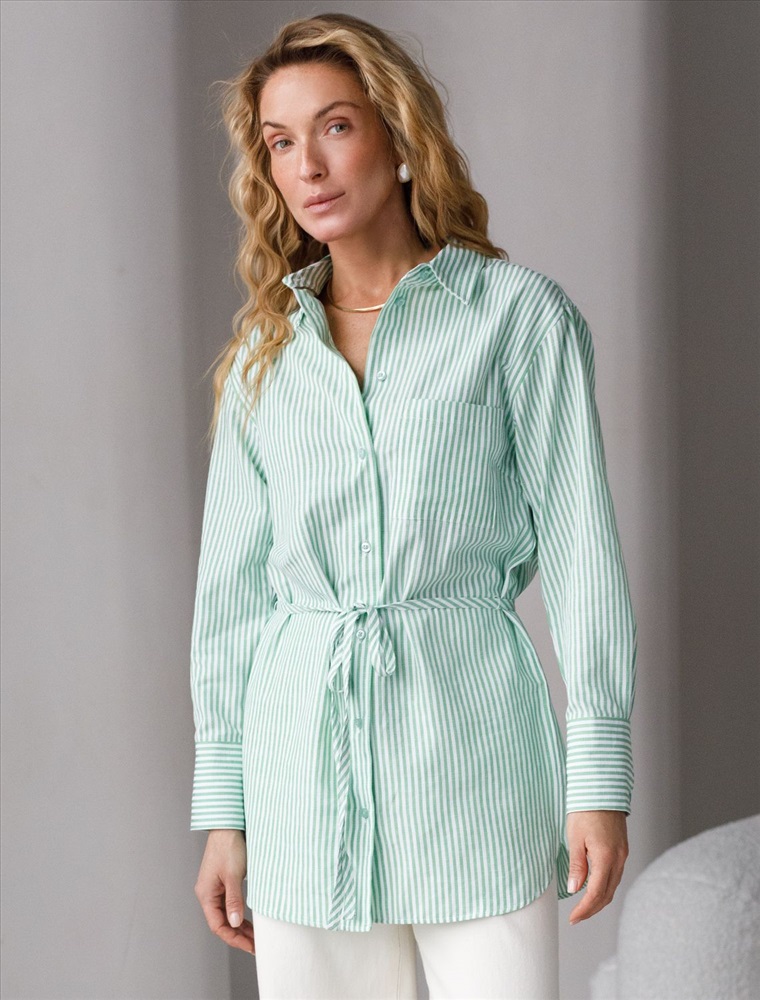 Плотность: 110 Г/м2 Женственная удлиненная блузка белого цвета в тонкую фисташковую полоску прекрасно освежает повседневный образ благодаря нежной расцветке. Натуральный хлопок обеспечивает деликатное прилегание, хорошую воздухопроницаемость, не сковывает движений и подходит для долгого ношения. Благодаря поясу классическую рубашку можно приталить, создавая красивый силуэт, где выгодно подчеркнутся достоинства фигуры и добавится изящества образу. Удлиненный крой рубашки поможет скрыть возможные недостаки фигуры, при этом выглядеть стильно. Отложной воротник и манжеты придают блузке аккуратный и завершенный вид. Принт в тонкую полоску добавляет динамику и легкость, такая блузка остается актуальной вне зависимости от сезона. Повседневная длинная блузка легко комбинируется с различными низами и поможет создать расслабленный или элегантный образ в зависимости от выбранных аксессуаров. Комментарии к товару
