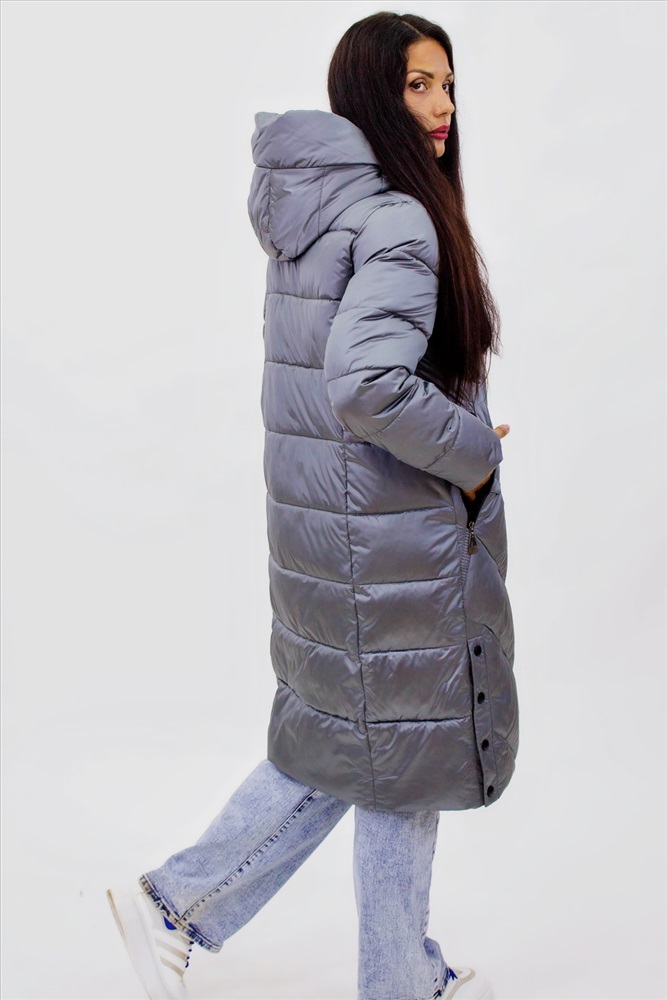 Застежка: молния Зимняя удлиненная куртка создана для комфорта в холодную погоду до -20 градусов, идеально подходит для городской жизни и активного отдыха. Особое внимание в ее дизайне уделено каждой детали, чтобы вы могли наслаждаться не только теплом, но и стильным внешним видом. Основной элемент куртки капюшон с фиксаторами, который обеспечивает плотную и удобную посадку. Вы сможете легко регулировать его объем в зависимости от погодных условий, что особенно важно в непредсказуемую зимнюю погоду. Двухзамковая молния с внутренней планкой не только защищает от ветра, но и добавляет дополнительный уровень комфорта. Глубокие карманы на молнии обеспечивают надежное место для хранения мелочей, таких как телефон или ключи, гарантируя их безопасность и доступность в любой момент. Цветовая палитра куртки радует глаз это глубокие, насыщенные оттенки с деликатным отблеском, которые привлекают внимание и подчеркивают ваш стиль. В такой куртке вы не просто останетесь теплой, но и будете выглядеть модно и современно. Наполнитель куртки холлофайбер, известный своими отличными теплоизоляционными свойствами. Он легкий и не утяжеляет одежду, но при этом обеспечивает тепло даже в самые холодные дни. Простеганная конструкция (не ультрастеп) гарантирует равномерное распределение утеплителя, исключая возможность его скапливания в отдельных участках. Эта технология делает куртку более долговечной и практичной, сохраняя её первоначальные свойства даже после многократного использования. Осмысленный дизайн стежки, выполненный под углом от боков к центру, визуально корректирует фигуру, создавая стройный силуэт. А кнопки внизу по бокам не только добавляют элемент удобства, но и растягиваются, что делает передвижение более комфортным особенно в общественном транспорте или при посадке в автомобиль. Эта куртка не просто одежда, а ваш надежный защитник от зимних холодов, сочетающий в себе современные технологии и стильный дизайн. Позвольте себе комфорт и уют в любую погоду! Не упустите возможность дополнить свой гардероб этой великолепной курткой, которая станет вашим верным другом в зимних приключениях. Рост модели на фото: 175 см, размер: 46-48. На ней представлена куртка в размере 48-50