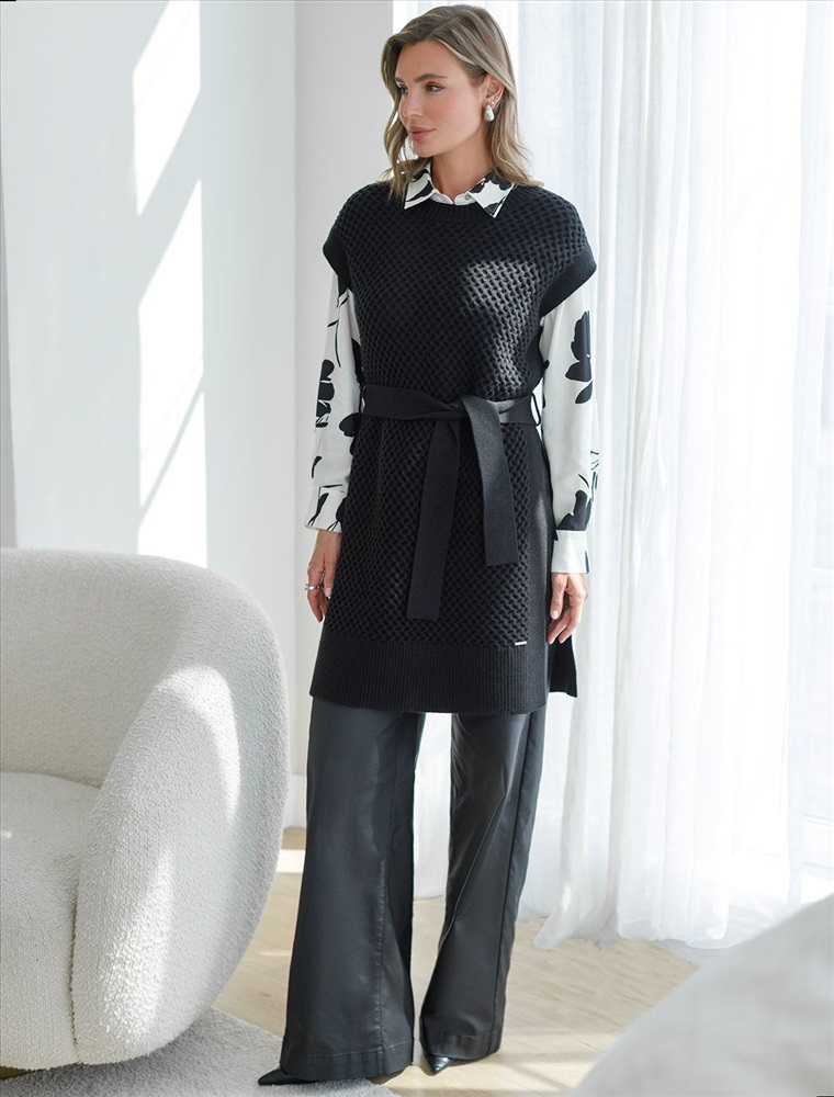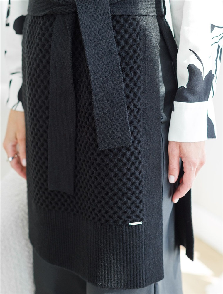 Удлиненный жилет выполнен из мягкой пряжи с кашемиром. Модель фактурной вязки дополнена высокими боковыми разрезами и поясом в тон изделия. Хорошо сочетается водолазками, лонгсливами и блузками. Мягкая пряжа очень приятная к телу, поддержит комфорт на протяжении всего дня, при этом не перегревая. Сочетается в костюме с брюками D38.013, D38.012 и юбкой D36.016