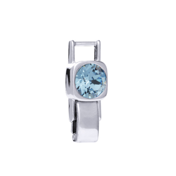 Изготовлено из ювелирного сплава на основе латуни с гальваническим покрытием родием. Изделие украшают кристаллы SW цвета аквамарин диаметром 8мм. Длина 1см.