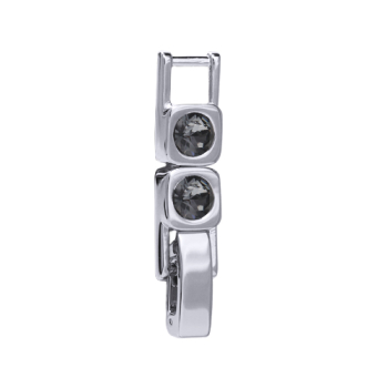 Изготовлено из ювелирного сплава на основе латуни с гальваническим покрытием родием. Изделие украшают кристаллы SW темно-серого цвета диаметром 4мм. Длина 2см.