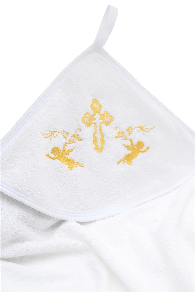 Состав: хлопок 100% Модель: Уголок махровый Крестильный Тип товара: полотенце Материал: махра | махра Бренд: Доброе утро Назначение: для ванной НДС: 22% Особенности: полотенце с уголком Отделка: с вышивкой Рисунок: разное Сезонность: лето | осень | весна | зима Детское крестильное полотенце с уголком махровое белое изготовлено из мягкого 100% хлопка, который подходит для новорожденных, не вызывает аллергии и отлично впитывает влагу. С обеих сторон полотенца - мягкая петельчатая махра. Полотенце с капюшоном большого размера 90х100 см для детей с рождения до 5-6 лет позволяет укутать малыша полностью с макушки до пяточек. Удобный капюшон с вышивкой золотой нитью (православная тематика, ангелы) поможет быстро высушить волосы. Этот банный аксессуар с оригинальным дизайном, как мягкое махровое облачко, понравится всем членам семьи без исключения! Полотенце быстро впитывает влагу и подойдет для ванной. Махровая ткань отлично пропускает воздух, позволяя коже дышать. Полотенце для мальчика и девочки подходит всем, кто подбирает товары для новорожденных, памятный подарок молодой будущей маме, на рождение ребенка, на годик, выписку из роддома, крестины малыша, внуку, внучке. Это банное махровое полотенце для новорожденного с уголком в идеальном исполнении: натуральное, функциональное и очень красивое! Таблица размеров и веса