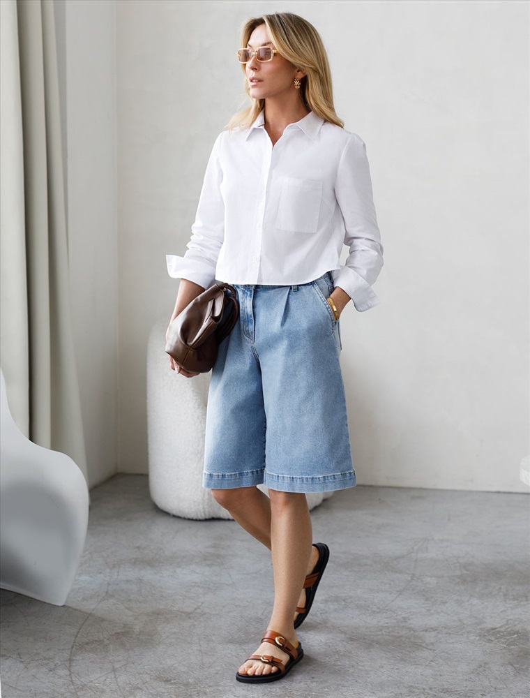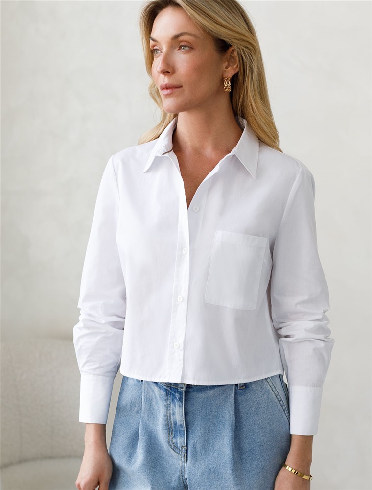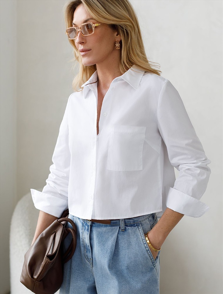 Плотность: 110 Г/м2 Параметры модели на первом фото: Рост 170, бюст 89, талия 63, бедра 92 Укороченная блузка выполнена из хлопка. Лаконичная модель дополнена карманом. Изделие хорошо держит форму, что позволяет создать стильные строгие образы в офис. Чтобы подчеркнуть линию талии не теряя пропорций, сочетайте в комплекте с прямыми и широкими брюками. В более расслабленном образе – с джинсами трубами. Комментарии к товару