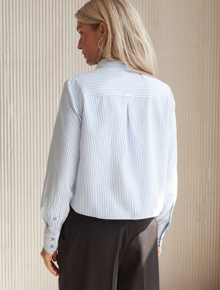 Плотность: 105 Г/м2 Параметры модели на первом фото: Рост 170, бюст 89, талия 63, бедра 92 Укороченная блузка выполнена из хлопка. Лаконичная модель дополнена карманом. Изделие хорошо держит форму, что позволяет создать стильные строгие образы в офис. Чтобы подчеркнуть линию талии не теряя пропорций, сочетайте в комплекте с прямыми и широкими брюками. В более расслабленном образе – с джинсами трубами. Комментарии к товару