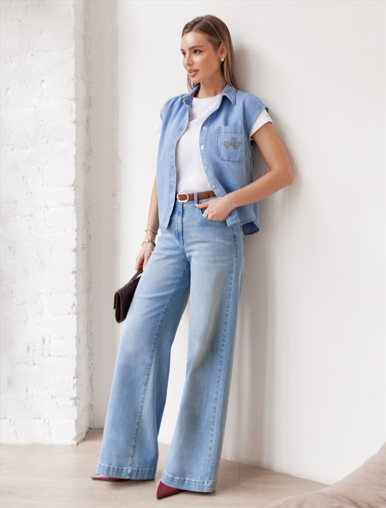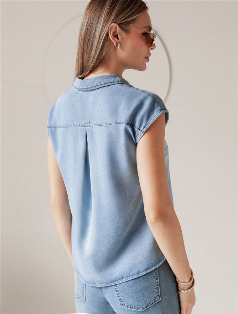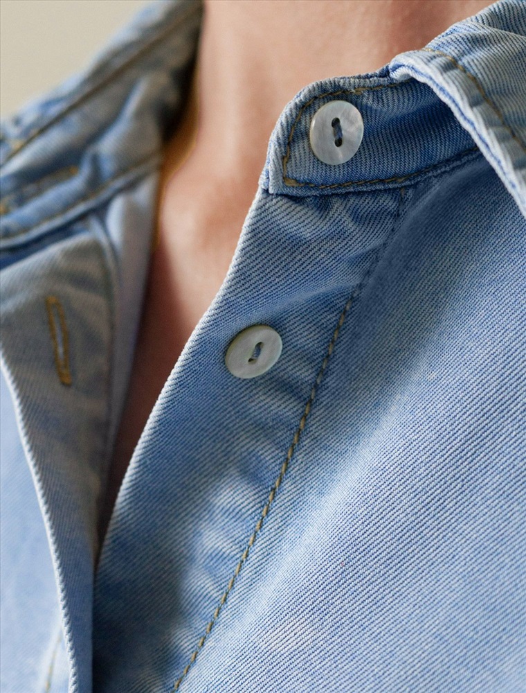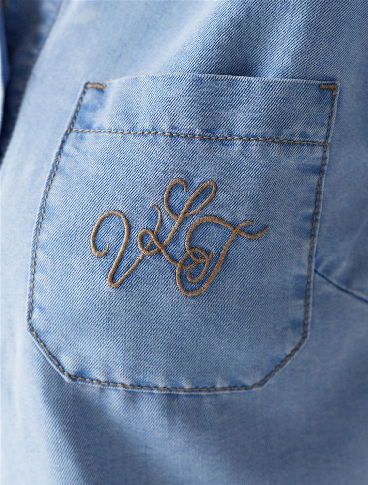 Стильная блузка светло-голубого цвета на пуговицах выполнена из джинсового лиоцелла плотностью 7,8 OZ, что придает ей легкость и комфорт в носке. Эта повседневная блузка оснащена цельнокроеным коротким рукавом и отложным воротником, создавая аккуратный и современный образ. На груди расположен карман, дополненный изящной вышивкой в виде логотипа бренда, которая добавляет уникальности и выразительности изделию. Ткань сочетает прочность и мягкость лиоцелла с вискозой, что делает её невероятно комфортной, дышащей, устойчивой к сминанию и идеально подходящей для чувствительной кожи. Благодаря нежным тактильтным ощущениям, будто шелк, от которого ощущается приятная прохлада, рубашка отлично подходит для создания легких летних образов или стильных ансамблей на каждый день засчет своей универсальности и практичности. Цельнокроеный рукав гарантирует свободу движений и удобство на весь день. Эта джинсовая рубашка на пуговицах станет базовым элементом гардероба для тех, кто ценит сочетание классики и модных деталей.