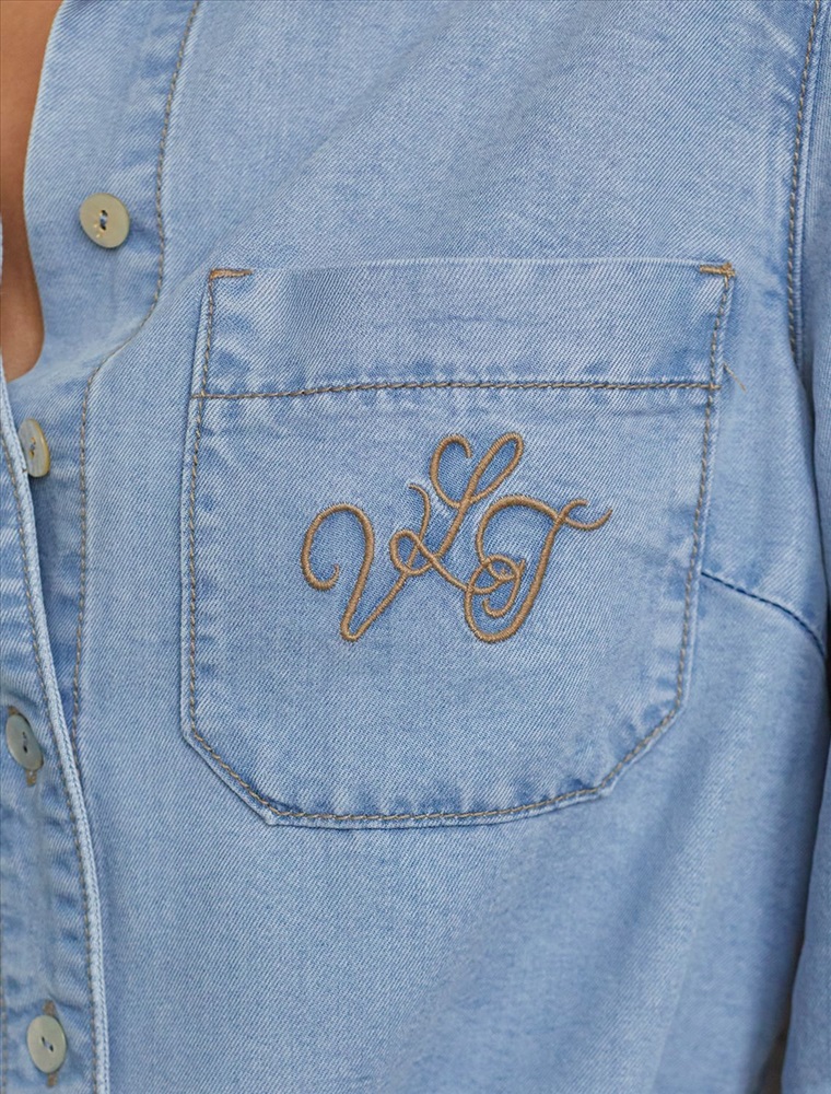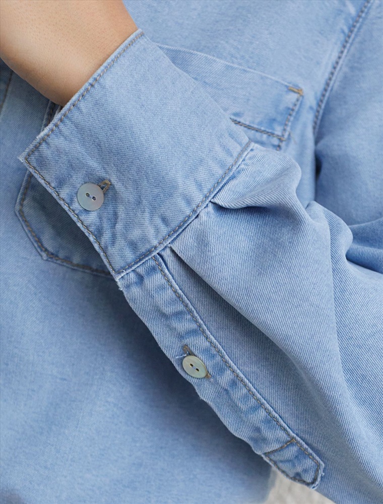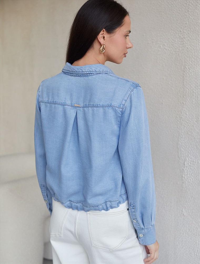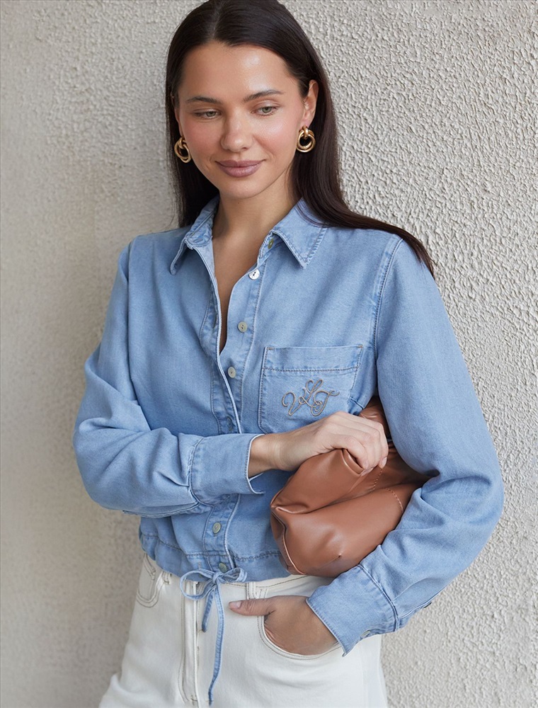 Плотность: 7,8 OZ Укороченная стильная блузка светло-голубого цвета с кулиской по низу выполнена из мягкого джинсового лиоцелла плотностью 7,8 OZ, который отлично держит форму и обеспечивает комфортную посадку на любую фигуру. Кулиска сформирует красивый силуэт, позволяя легко регулировать длину по желанию и подчеркнет достоинства фигуры, не стесняя движений. Короткая джинсовая рубашка на пуговицах с отложным воротником придаст образу стильный и современный вид. Практичная деталь — карман на груди с аккуратной вышивкой в виде логотипа бренда - украшает изделие. Ткань сочетает прочность и мягкость лиоцелла с вискозой, что делает её невероятно комфортной, дышащей, устойчивой к сминанию и идеально подходящей для чувствительной кожи. Благодаря нежным тактильным ощущениям, будто шелк, от которого ощущается приятная прохлада, рубашка отлично подходит для создания легких летних образов или стильных ансамблей на каждый день засчет своей универсальности. Длинный рукав гарантирует свободу движений и удобство на весь день. Джинсовую блузку можно сочетать в стиле кэжуал, а также создавать монохромные образы или добавлять яркие акценты с помощью аксессуаров. Эта джинсовая рубашка на пуговицах станет базовым элементом гардероба для тех, кто ценит сочетание моды и удобства. Рекомендуем сочетать с артикулами: D54.257, D56.127, D54.239 Комментарии к товару