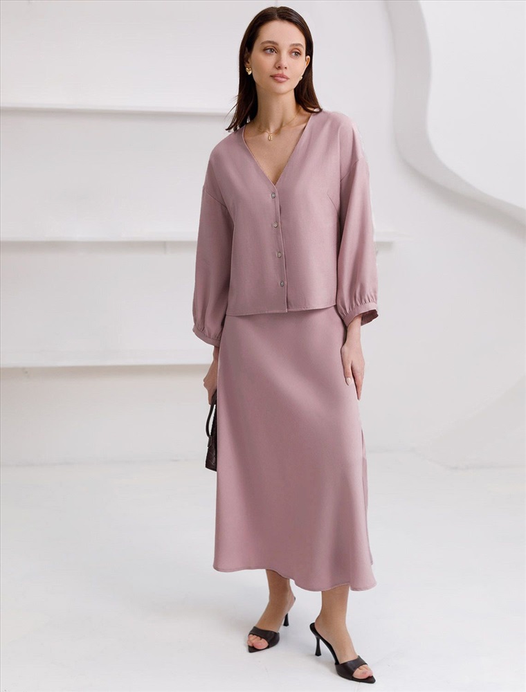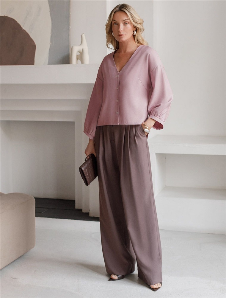 Плотность: 180 Г/м2 Элегантная укороченная блузка нежного зефирно-розового цвета выполнена из плотного лиоцелла. Лиоцелл это более дорогой и экологичный вариант вискозы, очень прочный и шелковистый. Ткань отличается от регулярной коллекции из лиоцелла - она содержит еще больше лиоцелла (92%), благодаря чему имеет более нежную шелковистую фактуру. Модель дополнена объемными рукавами длиной 7/8, создающими модный акцент. Укороченная передняя часть блузки выгодно подчеркивает линию талии, а удлиненная спинка обеспечивает комфорт. Этот асимметричный фасон придает образу динамичности, а V вырез визуально вытягивает силуэт. Свободный крой романтиной блузки не сковывает движений и отлично садится по фигуре даже на большие размеры, скрывая возможные недостатки. Эта легкая блузка с застежкой на пуговицы идеальный выборо для комфорта и стиля в теплое время года, она идеально адаптируется под любой повод. Комплект из лиоцелла подчеркнет ваш вкус и статус. Это идеальный выбор для особенных моментов. Такой образ будет уместен на торжественных мероприятиях и приемах, выпускных вечерах, семейных праздниках и свадьбах. Реомендуем сочетать с артикулами: D26.208, D24.313 Комментарии к товару