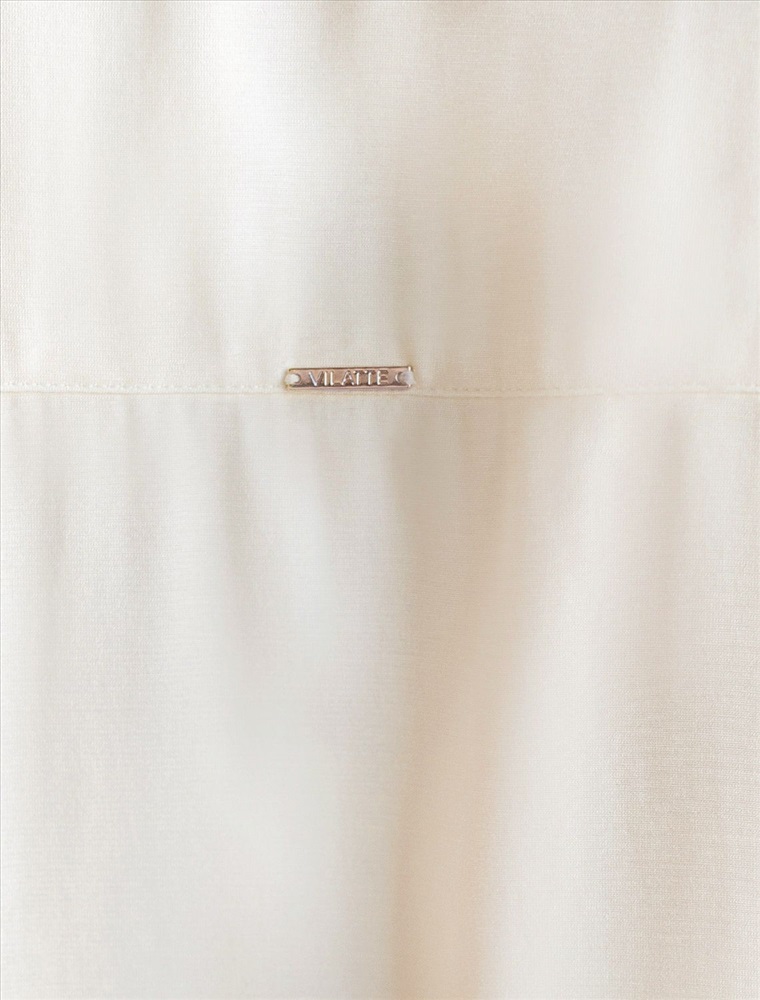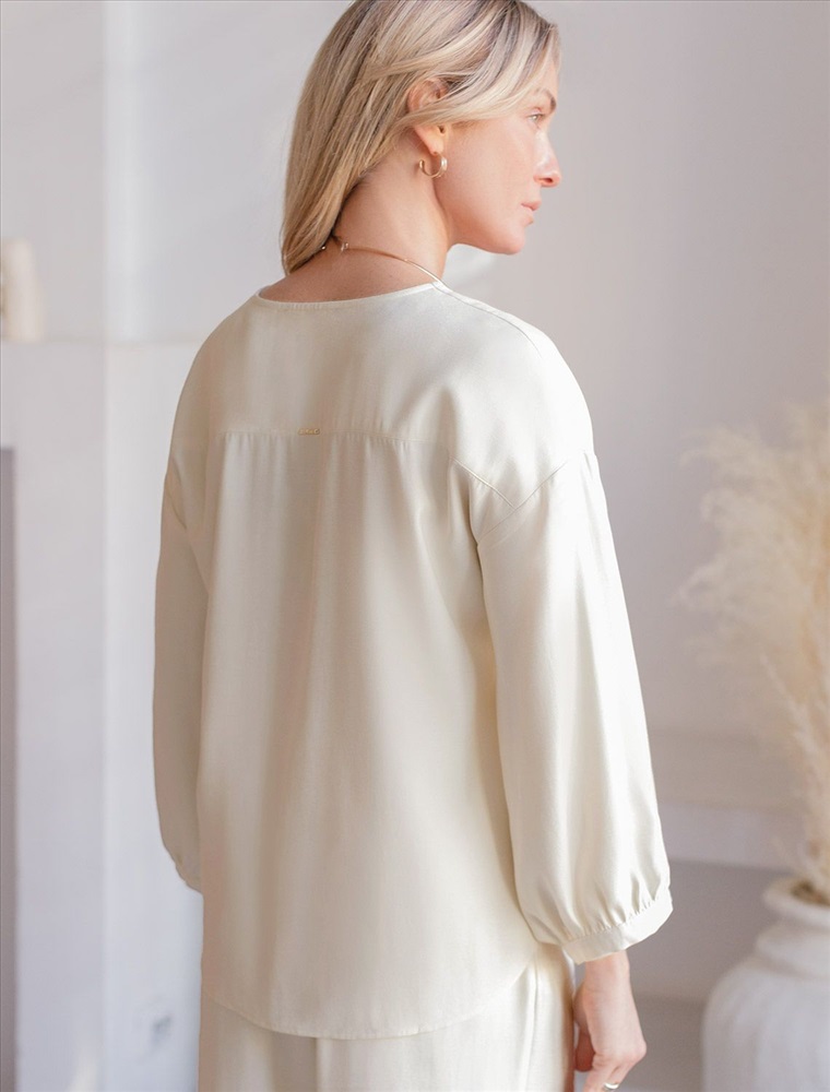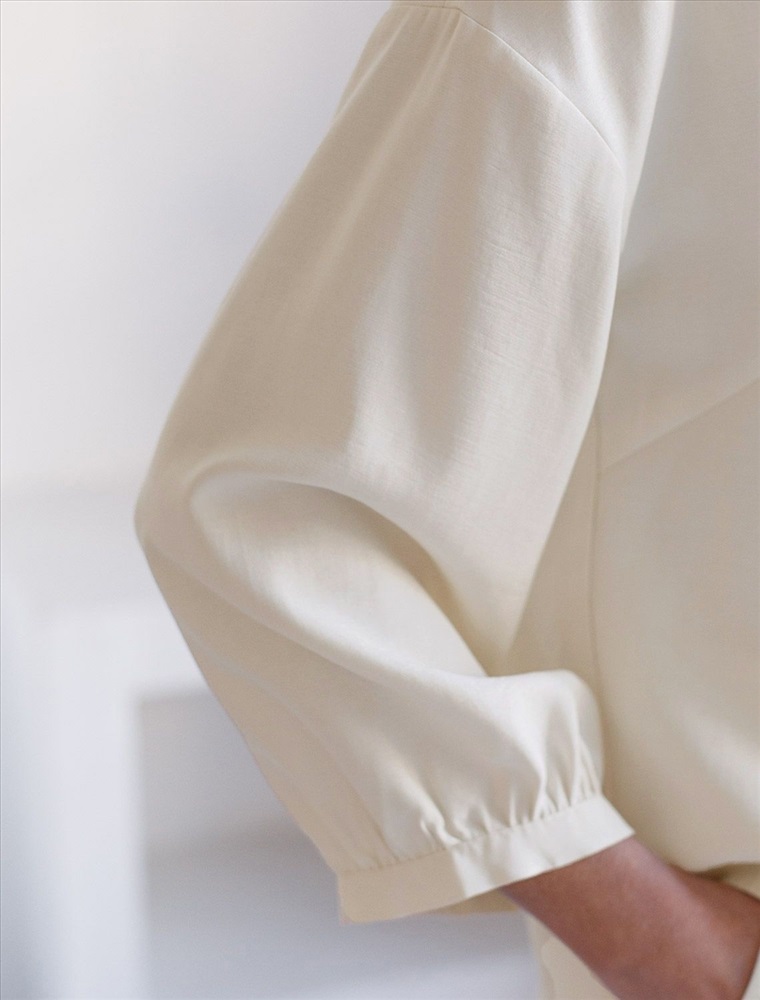 Плотность: 180 Г/м2 Элегантная укороченная блузка натурального белого цвета выполнена из плотного лиоцелла. Лиоцелл это более дорогой и экологичный вариант вискозы, очень прочный и шелковистый. Ткань отличается от регулярной коллекции из лиоцелла - она содержит еще больше лиоцелла (92%), благодаря чему имеет более нежную шелковистую фактуру. Модель дополнена объемными рукавами длиной 7/8, создающими модный акцент. Укороченная передняя часть блузки выгодно подчеркивает линию талии, а удлиненная спинка обеспечивает комфорт. Этот асимметричный фасон придает образу динамичности, а V вырез визуально вытягивает силуэт. Свободный крой романтиной блузки не сковывает движений и отлично садится по фигуре даже на большие размеры, скрывая возможные недостатки. Эта легкая блузка с застежкой на пуговицы идеальный выборо для комфорта и стиля в теплое время года, она идеально адаптируется под любой повод. Комплект из лиоцелла подчеркнет ваш вкус и статус. Это идеальный выбор для особенных моментов. Такой образ будет уместен на торжественных мероприятиях и приемах, выпускных вечерах, семейных праздниках и свадьбах. Реомендуем сочетать с артикулами: D26.208, D24.313