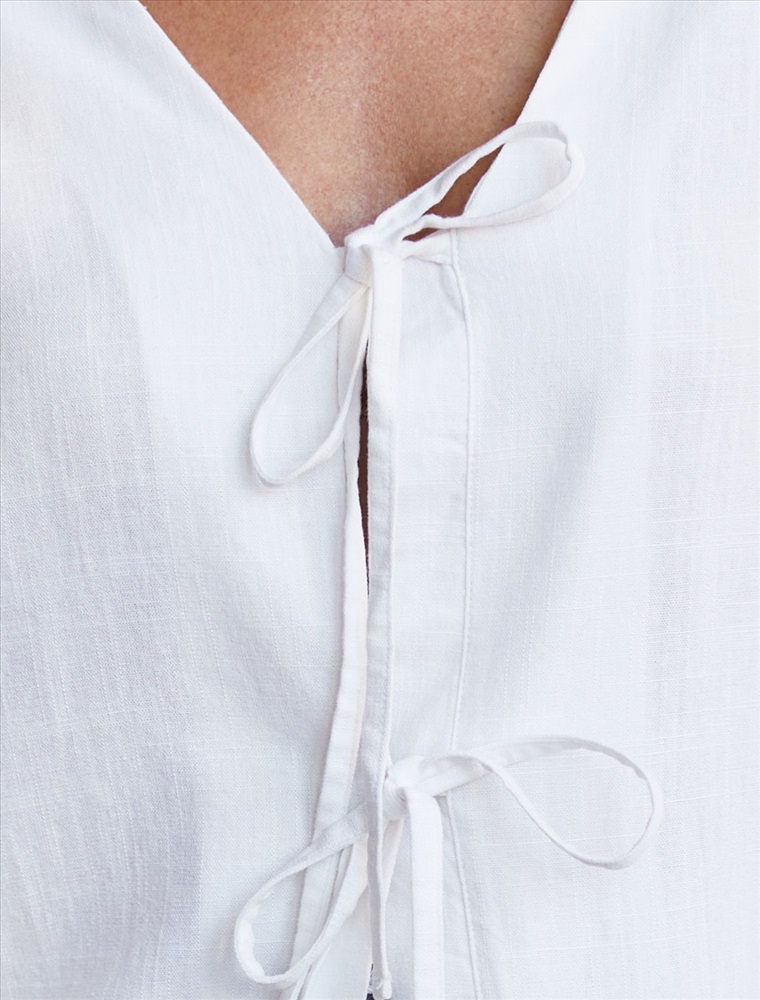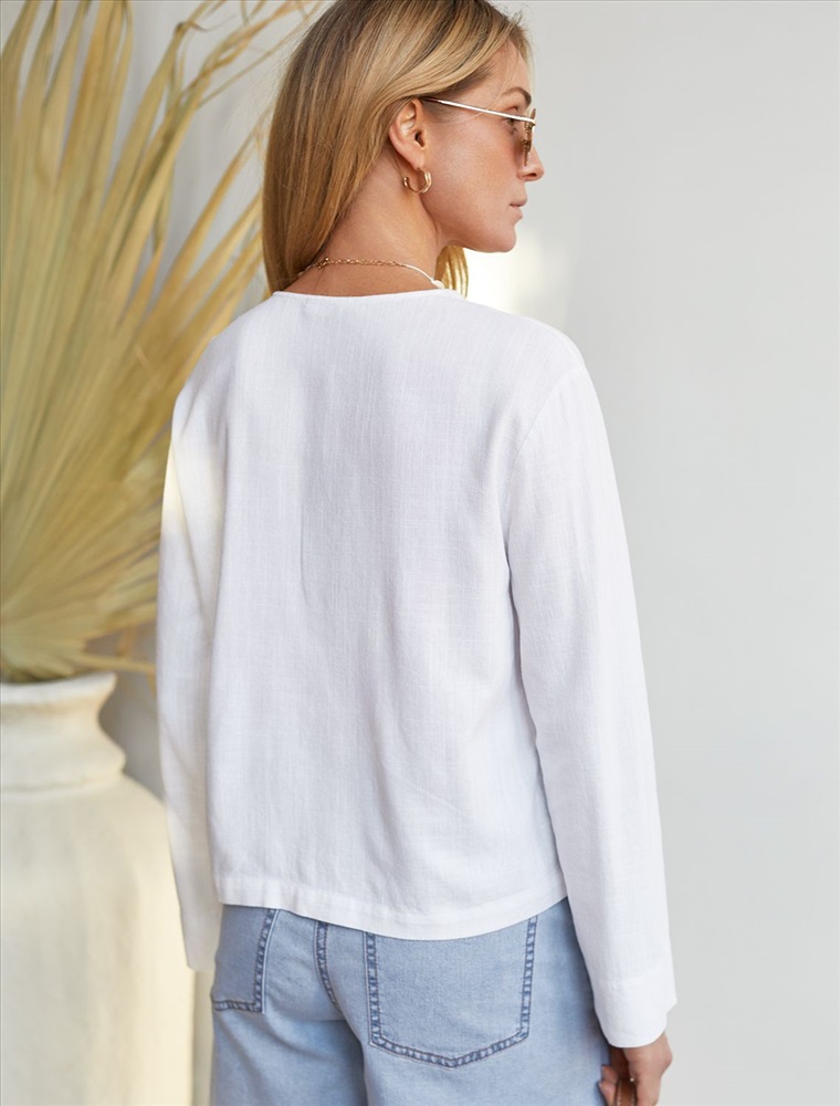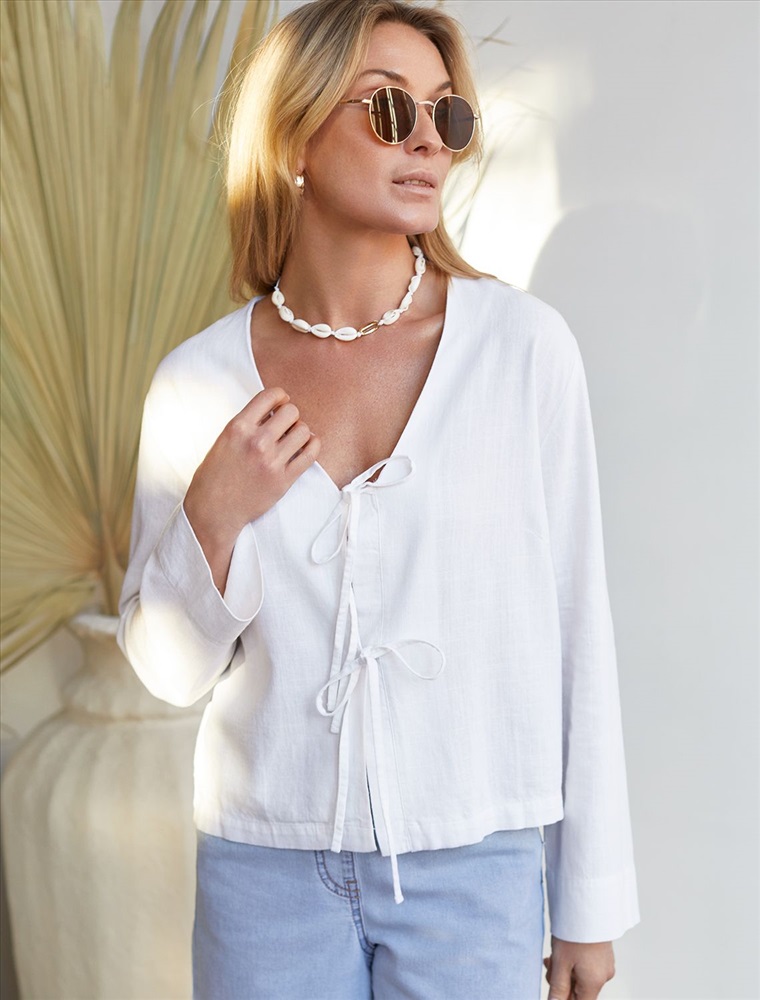 Плотность: 200 Г/м2 Свободная блузка белого цвета с завязками изо льна с вискозой, плотностью 200 Г/м2 - идеальный вариант для весны и лета. Сочетание льна и вискозы обеспечивает комфорт и прохладу в жаркие дни. Материал хорошо драпируется и мягко прилегает к фигуре, создавая струящиеся складки. Эта эффектная блузка сочетает в себе современный крой, удобство и стиль. V-вырез визуально вытягивает силуэт, спущенная линия плеча придает модный и расслабленный акцент, а широкий рукав создает красивый и воздушный силуэт. Завязки делают льняную блузку особенно практичной, вы можете носить ее растегнутой, в качестве верхнего слоя. Эта легкая романтичная блузка подходит для повседневного гардероба, смотрится красиво и стильно, обеспечивая максимальный комфорт, подойдет и на большие размеры. Рекомендуем сочетать с артикулом: D24.308 Комментарии к товару