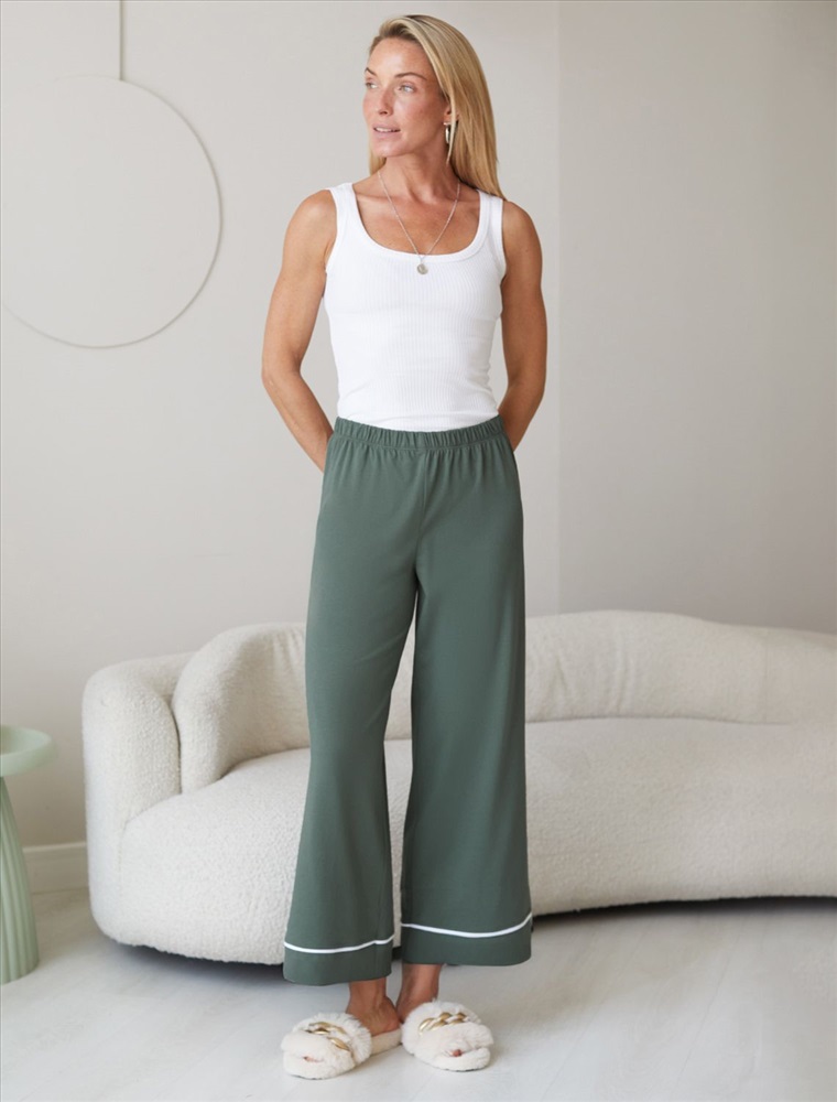 Контрастный кант по низу добавляет стильный акцент и возможность сочетать с белыми футболками нашего бренда. Эти брючки идеально подойдут тем, кто ищет стильное решение с учетом комфорта и удобства, в них вы будете женственны и утонченны даже в домашней обстановке.