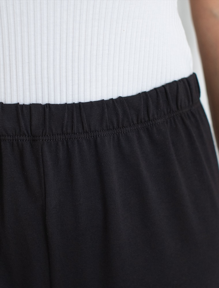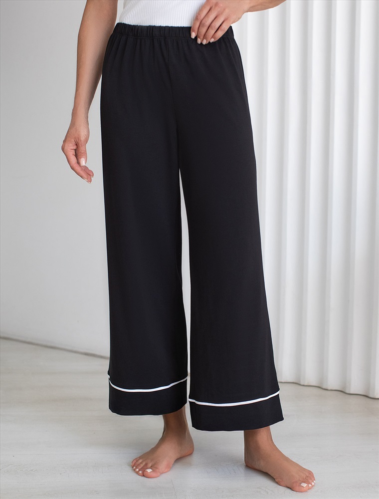 Плотность: 170 Г/м2 Размер товара на первом фото: 42 Укороченные брюки практичного черного цвета из мягкого эластичного хлопка подарят вам комфорт в любое время дня. Прямой крой обеспечивает свободу движений и удобство при носке. Материал приятен на ощупь, хорошо пропускает воздух и позволяет коже дышать, делая эти брюки идеальным выбором для повседневной носки. Широкие брюки прекрасно подойдут на женщин с фигурой плюс сайз, на высокий рост и на девушек низкого роста, создут гармоничный образ без стеснения движений. Представлены большие размеры. Контрастный кант по низу добавляет стильный акцент и возможность сочетать с белыми футболками нашего бренда. Эти брючки идеально подойдут тем, кто ищет стильное решение с учетом комфорта и удобства, в них вы будете женственны и утонченны даже в домашней обстановке. Комментарии к товару