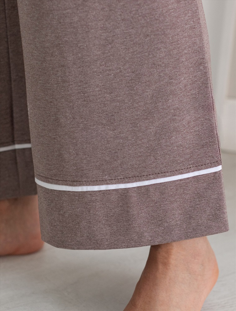 Контрастный кант по низу добавляет стильный акцент и возможность сочетать с белыми футболками нашего бренда. Эти брючки идеально подойдут тем, кто ищет стильное решение с учетом комфорта и удобства, в них вы будете женственны и утонченны даже в домашней обстановке.