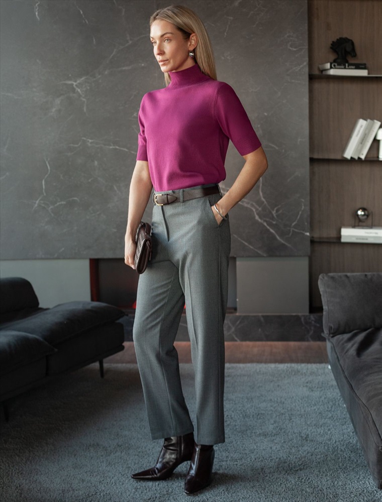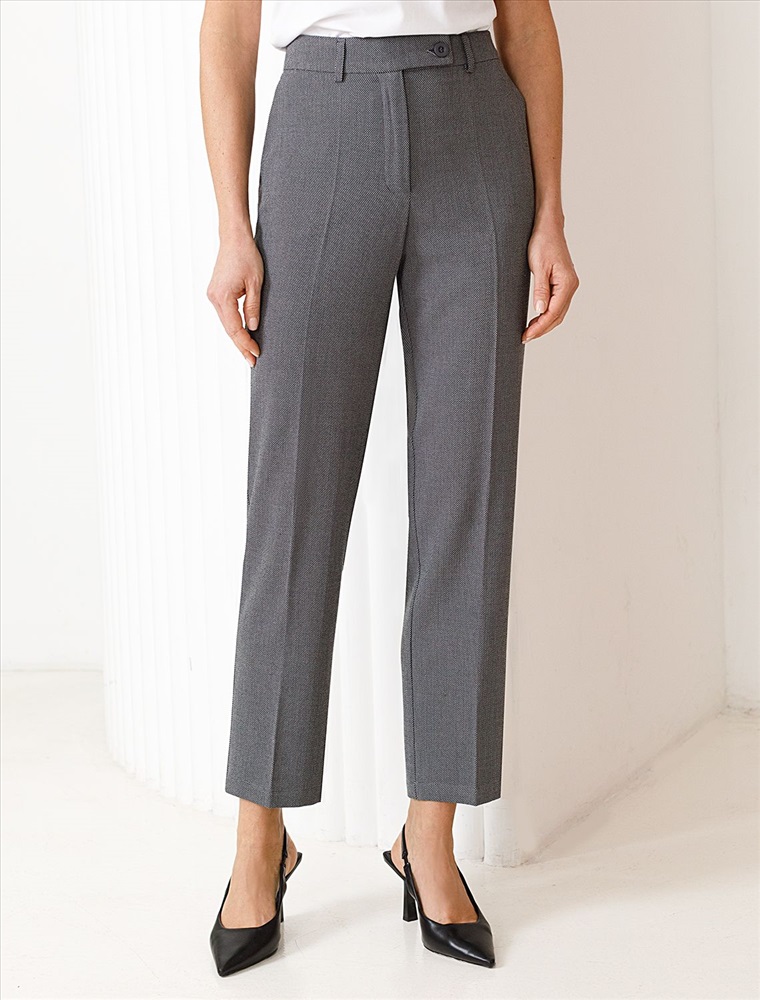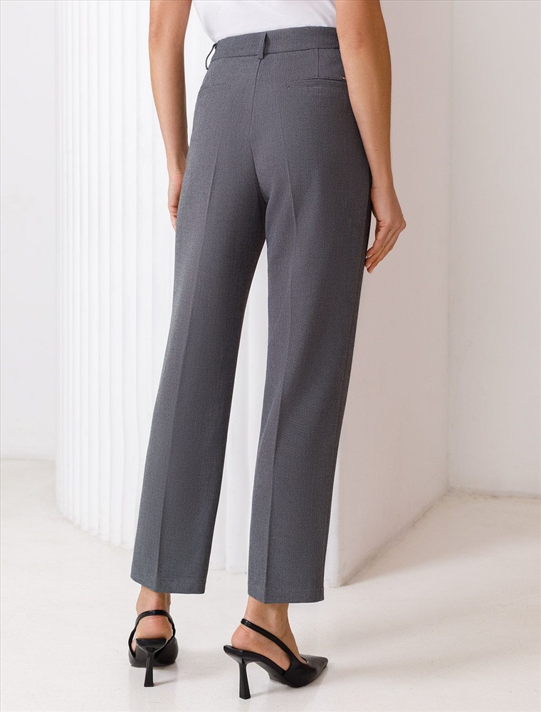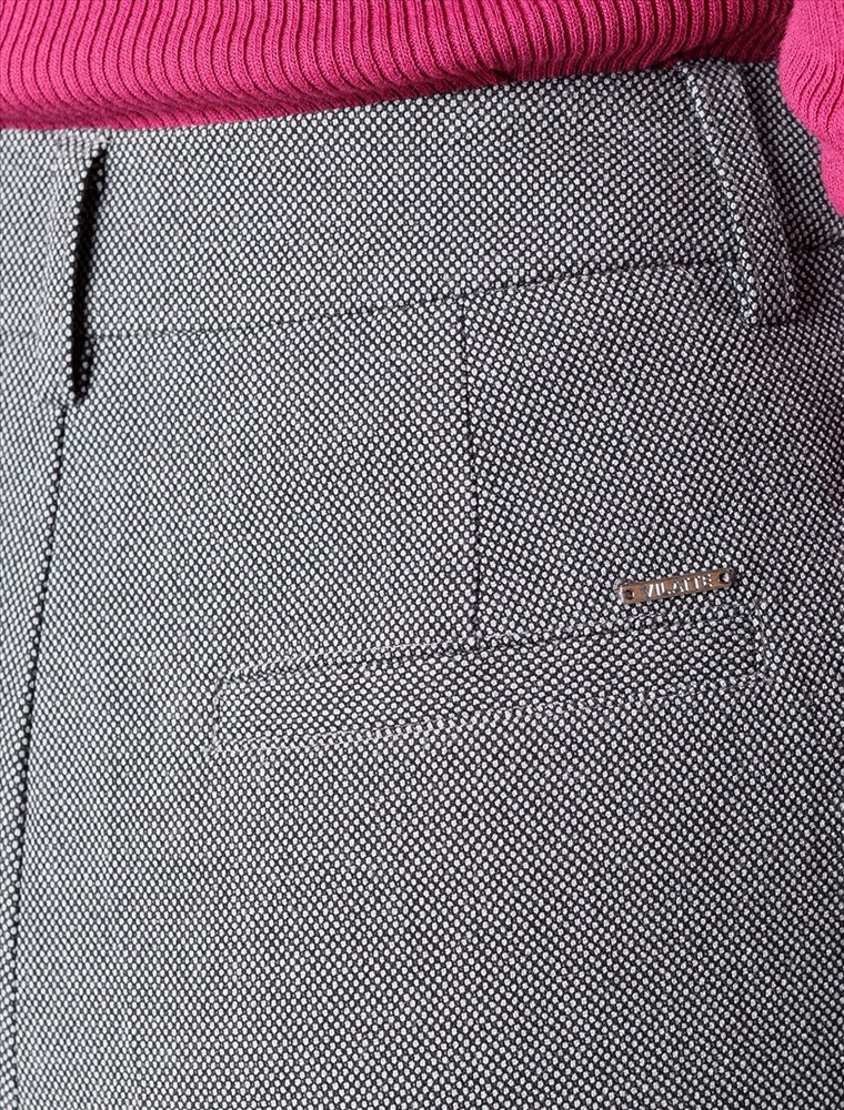 Плотность: 260 Г/м2 Параметры модели на первом фото: Рост 172, бюст 88, талия 64, бедра 88 Укороченные брюки выполнены из фактурной черно-серой поливискозы. Модель дополнена боковыми карманами и отлично подойдет как для строгого делового образа с блузкой и жакетом, так и для более расслабленного с футболкой и водолазкой. Эластичный материал изделия поддерживает оптимальный микроклимат, формоустойчивость и комфорт в течение всего дня. Комментарии к товару