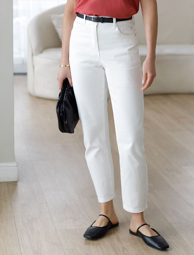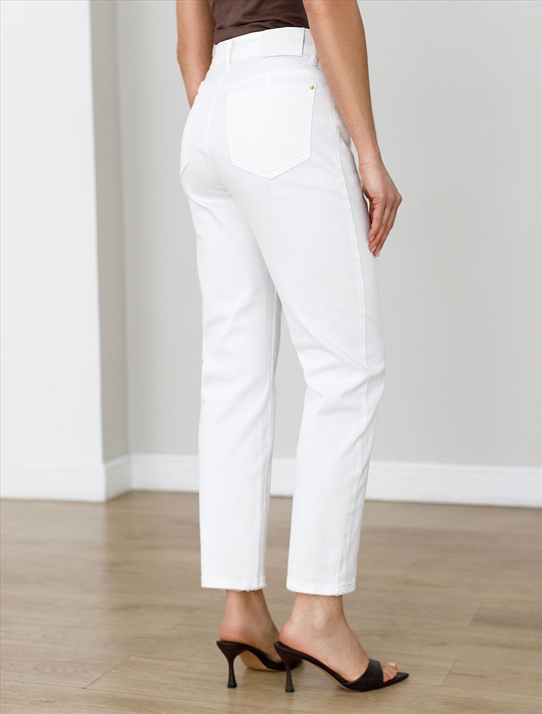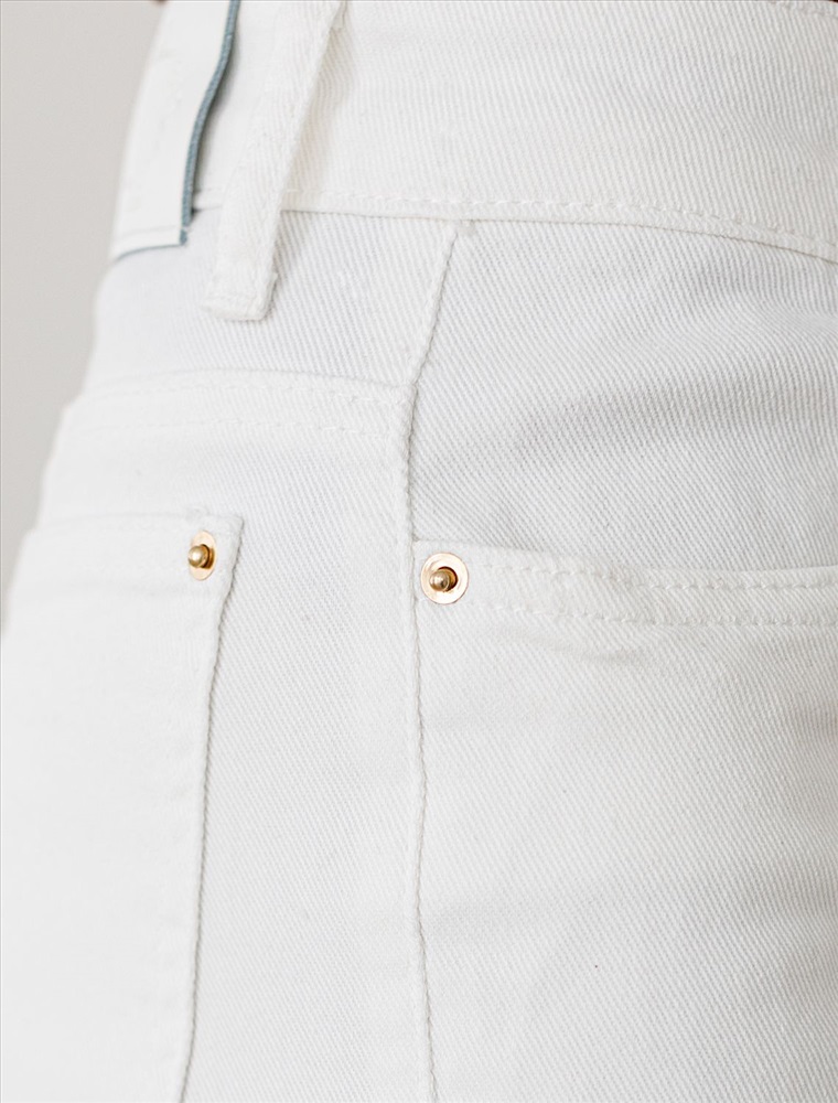 Укороченные джинсы белого цвета выполнены из плотного денима 11 OZ - 11 OZ - легкость и свобода движений, подходят для активного дня. Главная особенность этой модели — подшитый низ штанин, но дополнен стильнами рваными элементами для создания расслабленного образа. Благодаря эластичной ткани джинсы прекрасно садятся на любую фигуру и не сковывают движений. Такие модели подходят на большие размеры и смотрятся современно. Они легко впишутся в ваш повседневный образ и подчеркнут индивидуальность благодаря продуманному дизайну, который сочетает в себе классику и гранж.
