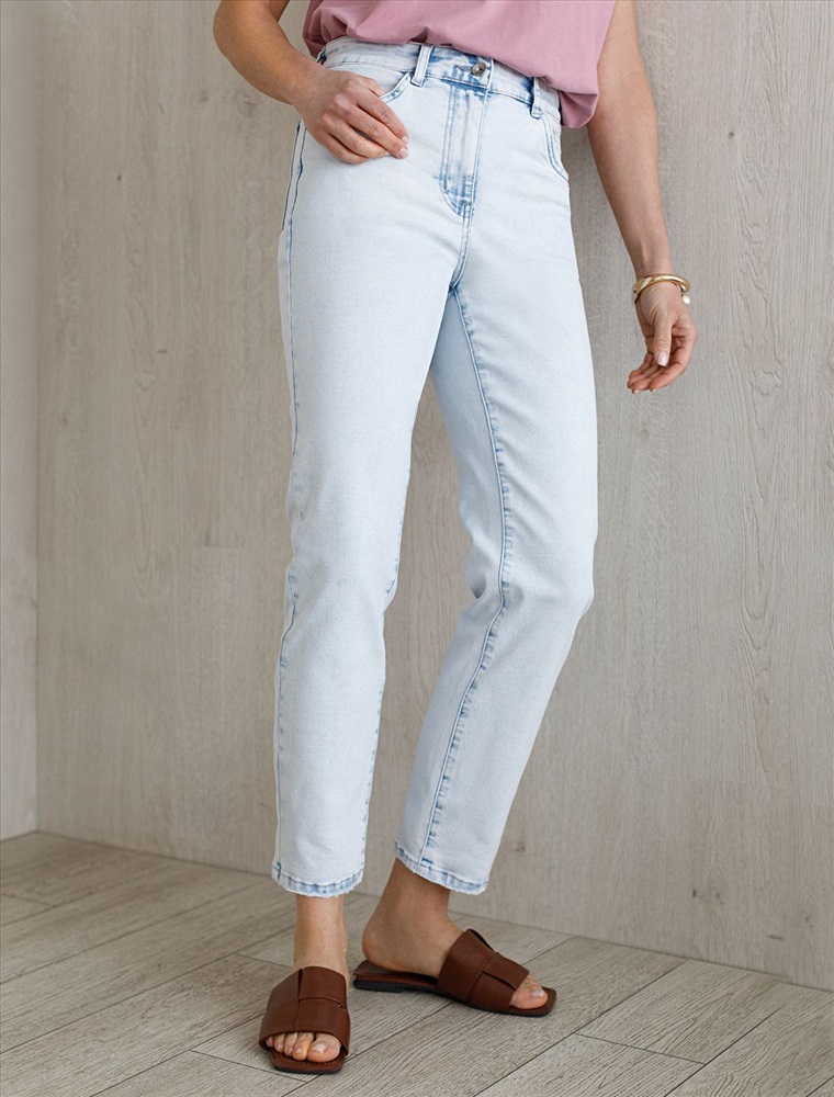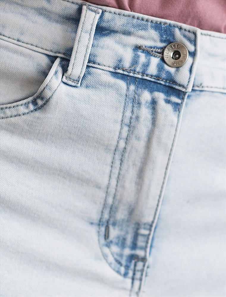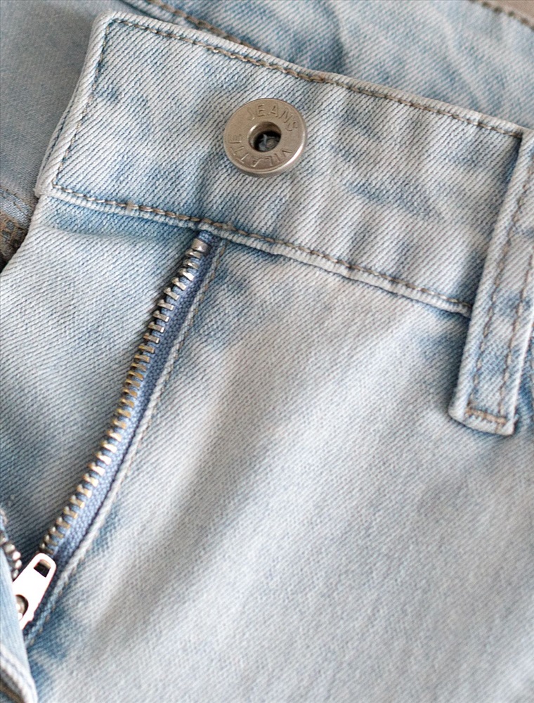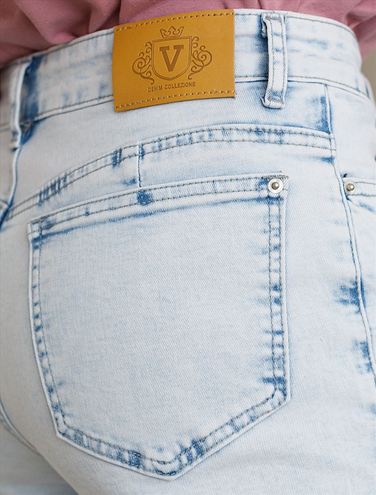 Укороченные джинсы светло-голубого цвета выполнены из плотного денима 13,07 OZ - классическая структура, которая отлично держит форму.и подчеркивает фигуру. После пошива изделие подвергли специальному виду вошинга — salt-stone washing (солт-стоун вошинг), что дословно значит стирка с каменной солью. Такой вид вошинга позволяет получить стильные потертости на голубых оттенках денима. Поэтому, главная особенность этой модели — контрастная стирка. Низ штанин подшит, но дополнен стильнами рваными элементами для создания расслабленного образа. Благодаря эластичной ткани джинсы прекрасно садятся на любую фигуру и не сковывают движений. Такие модели подходят на большие размеры и смотрятся современно. Они легко впишутся в повседневный образ и подчеркнут индивидуальность, благодаря продуманному дизайну, который сочетает в себе классику и гранж.