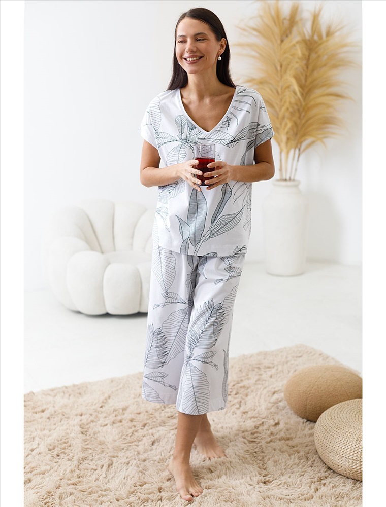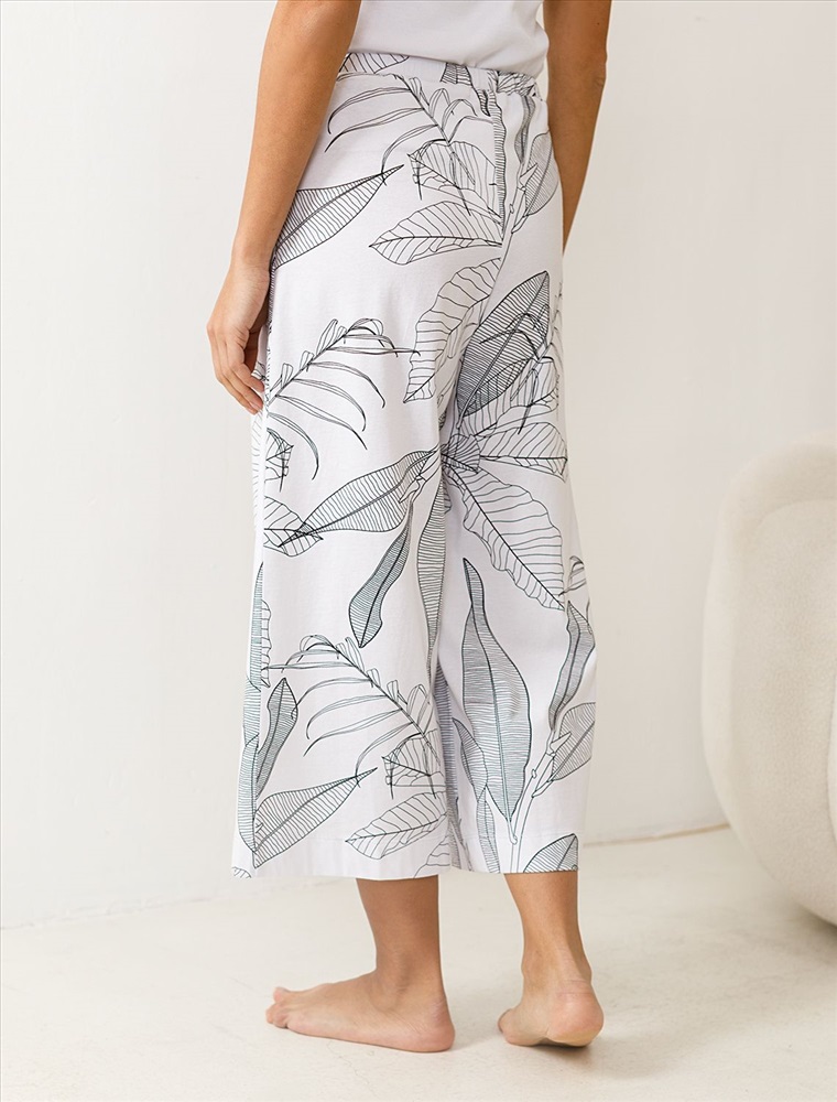 Плотность: 160 Г/м2 Комфортные укороченные широкие брюки бело-черного цвета на тонкой резинке выполнены из 100% хлопка плотностью 160 Г/м2. Главная особенность этого изделия — тонкое кулирное полотно, которое легче и воздушнее стандартного трикотажа. Благодаря своей деликатной текстуре модель идеально подходит для домашних образов и пижамных комплектов. Ткань отлично «дышит», обеспечивая максимальный уют во время сна и отдыха. Эти свободные брюки обеспечивают максимальную свободу движений благодаря широкому крою. Эластичная резинка в области талии гарантирует удобную посадку и индивидуальное прилегание по фигуре. Защипы добавляют выразительность образу и помогают сформировать актуальный силуэт, подчеркивая современные тенденции. Повседневные брюки с принтом в иде растений подходят для больших размеров, мягко скроют возможные недостатки фигуры, подчеркивая комфорт и стиль. Домашние брюки кюлоты отлично сочетаются с разными вариантами верхней одежды, поэтому их можно носить не только дома, но и на прогулках. Удобные брюки созданы для тех, кто ценит комфорт и практичность без лишних деталей. Рекомендуем сочетать с артикулами: D43.233, D43.234, D49.150, D49.151, D49.152, D49.153, D49.154, D49.157, D49.158, D49.159 Комментарии к товару