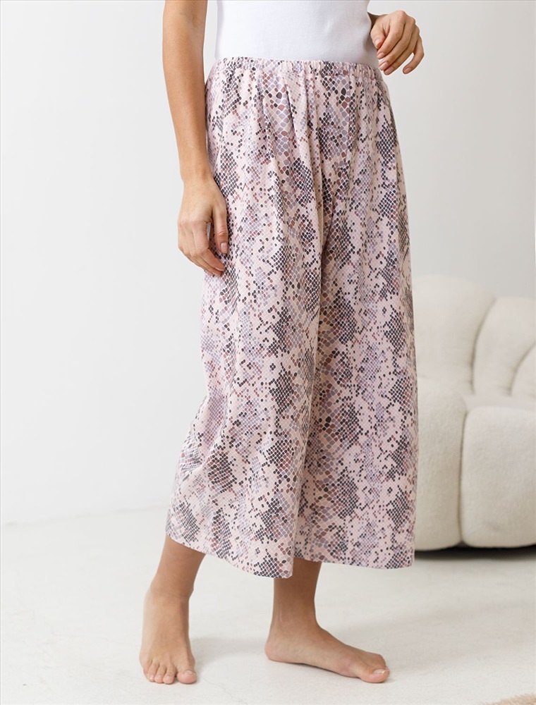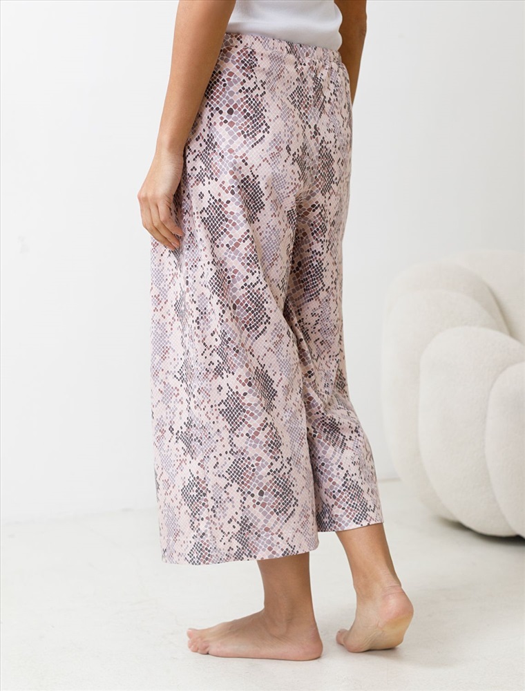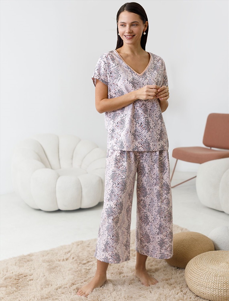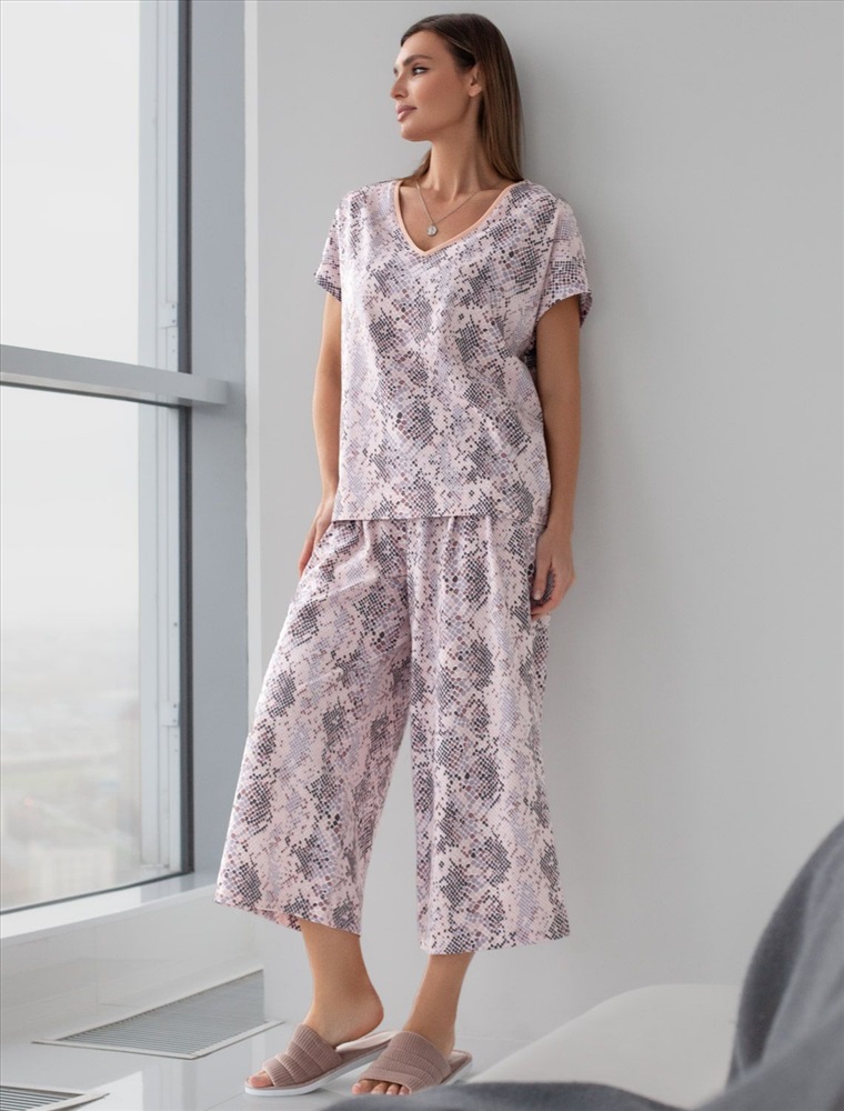 Плотность: 140 Г/м2 Комфортные укороченные широкие брюки кофейно-пудрового цвета на тонкой резинке выполнены из 100% хлопка плотностью 140 Г/м2. Главная особенность этого изделия — тонкое кулирное полотно, которое легче и воздушнее стандартного трикотажа. Благодаря своей деликатной текстуре модель идеально подходит для домашних образов и пижамных комплектов. Ткань отлично «дышит», обеспечивая максимальный уют во время сна и отдыха. Эти свободные брюки обеспечивают максимальную свободу движений благодаря широкому крою. Эластичная резинка в области талии гарантирует удобную посадку и индивидуальное прилегание по фигуре. Защипы добавляют выразительность образу и помогают сформировать актуальный силуэт, подчеркивая современные тенденции. Повседневные брюки с трендовым змеиным принтом подходят для больших размеров, мягко скроют возможные недостатки фигуры, подчеркивая комфорт и стиль. Домашние брюки кюлоты отлично сочетаются с разными вариантами верхней одежды, поэтому их можно носить не только дома, но и на прогулках. Удобные брюки созданы для тех, кто ценит комфорт и практичность без лишних деталей. Рекомендуем сочетать с артикулами: D43.233, D43.234, D49.150, D49.151, D49.152, D49.153, D49.154, D49.157, D49.158, D49.159 Комментарии к товару