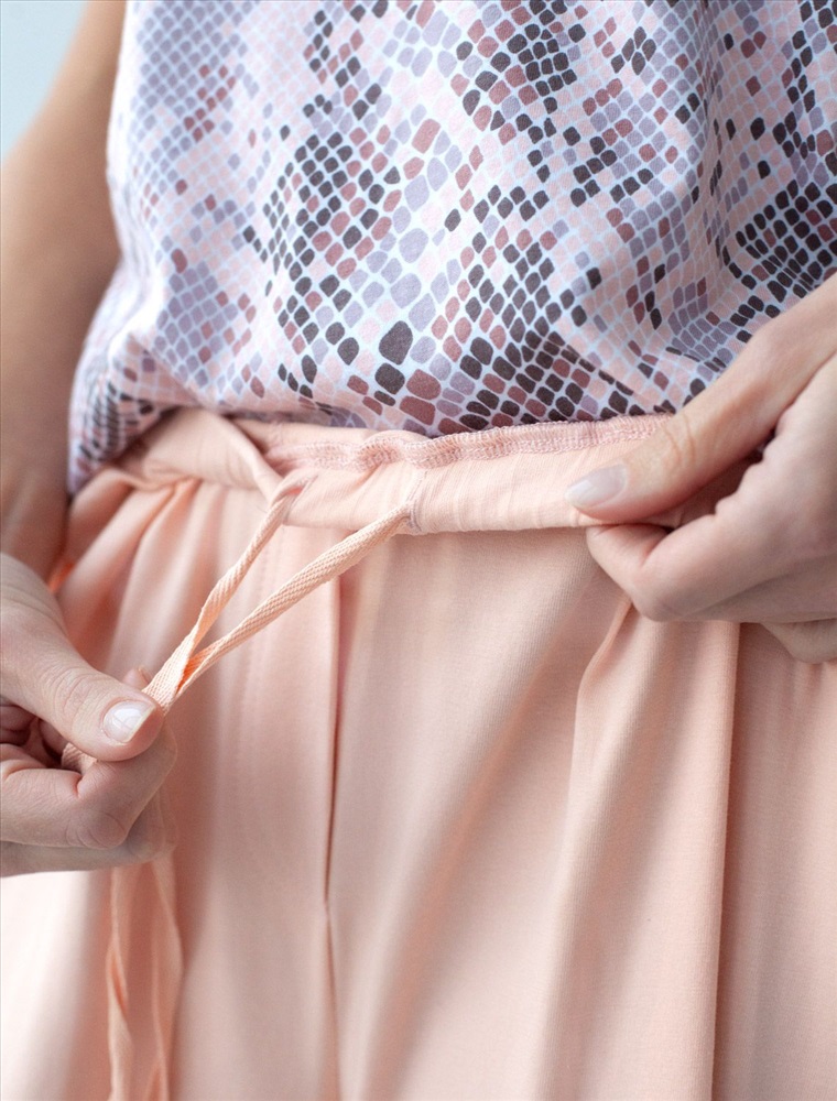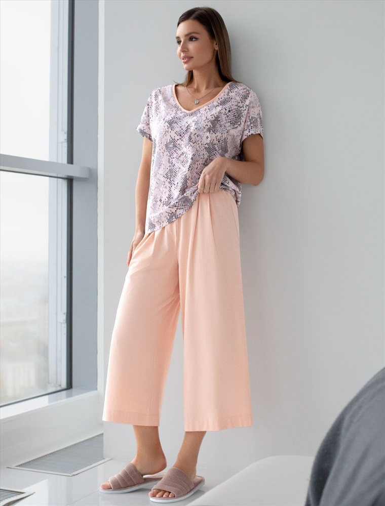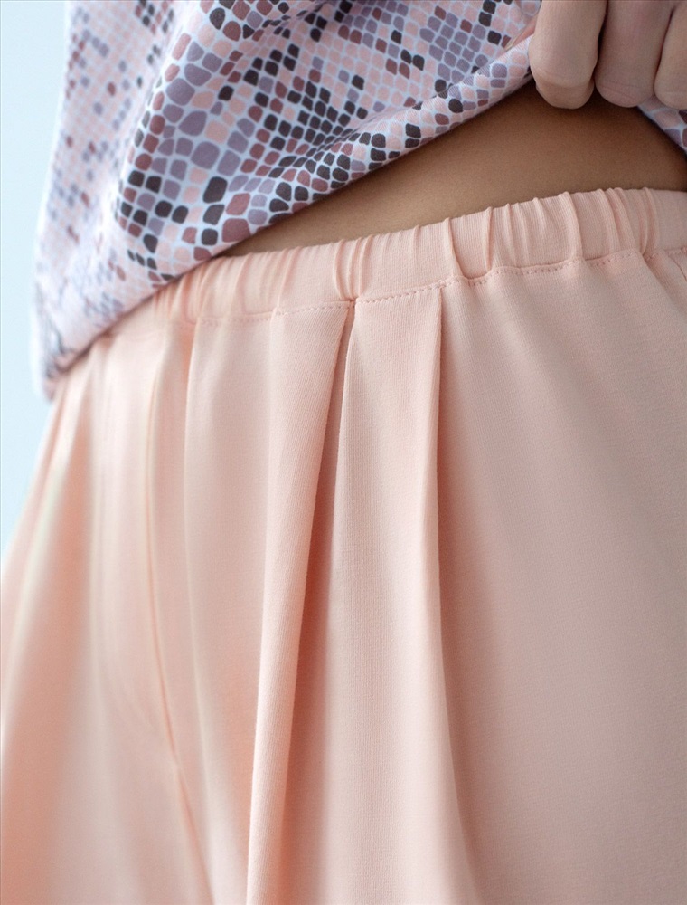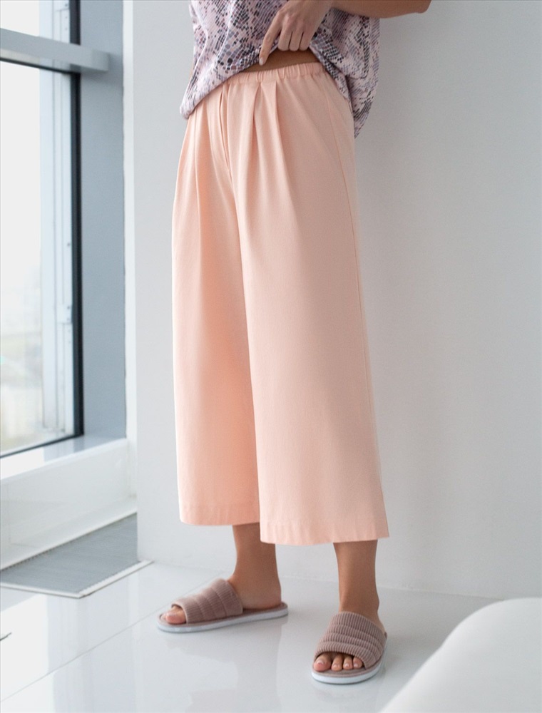 Комфортные укороченные широкие брюки кюлоты пудрового цвета на тонкой резинке выполнены из 100% хлопка плотностью 140 Г/м2. Главная особенность этого изделия — тонкое кулирное полотно, которое легче и воздушнее стандартного трикотажа. Благодаря своей деликатной текстуре модель идеально подходит для домашних образов и пижамных комплектов. Ткань отлично «дышит», обеспечивая максимальный уют во время сна и отдыха. Эти свободные брюки обеспечивают максимальную свободу движений благодаря широкому крою. Эластичная резинка в области талии гарантирует удобную посадку и индивидуальное прилегание по фигуре. Защипы добавляют выразительность образу и помогают сформировать актуальный силуэт, подчеркивая современные тенденции. Повседневные брюки подходят для больших размеров, мягко скроют возможные недостатки фигуры, подчеркивая комфорт и стиль. Домашние брюки кюлоты отлично сочетаются с разными вариантами верхней одежды, поэтому их можно носить не только дома, но и на прогулках. Удобные брюки созданы для тех, кто ценит комфорт и практичность без лишних деталей.