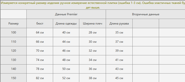 Размер: 100, 110, 120, 130, 140, 150
