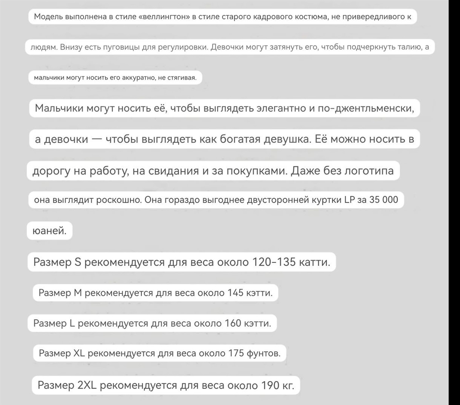 Если вам не подошел размер, не понравилось качества материала и тд. - не является причиной для возврата товара. Точные сроки доставки зависят от загруженности таможни!