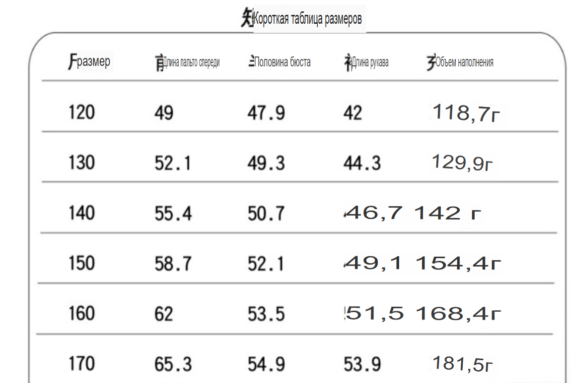 Размер: 120, 130, 140, 150, 160, 170
