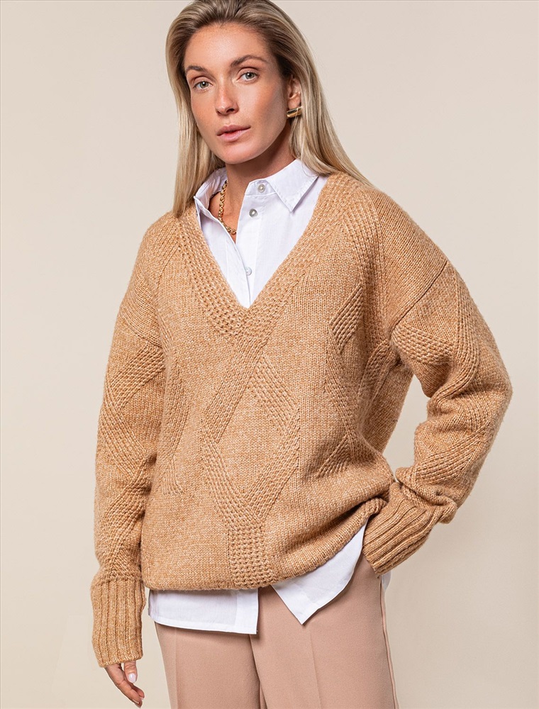 Параметры модели на первом фото: Рост 172, бюст 88, талия 64, бедра 88 Уютный узорно-вязаный джемпер выполнен из меланжевой пряжи с ангорой и легким пушистым мохером, поэтому модель получилась особенно приятной на ощупь и при этом отлично согревает, не перегревая тело. При желании комфортно носить даже на голое тело, так как изделие мягкое и совсем не колется. Комментарии к товару